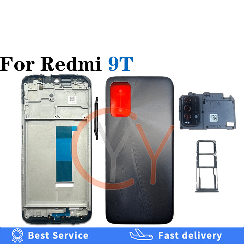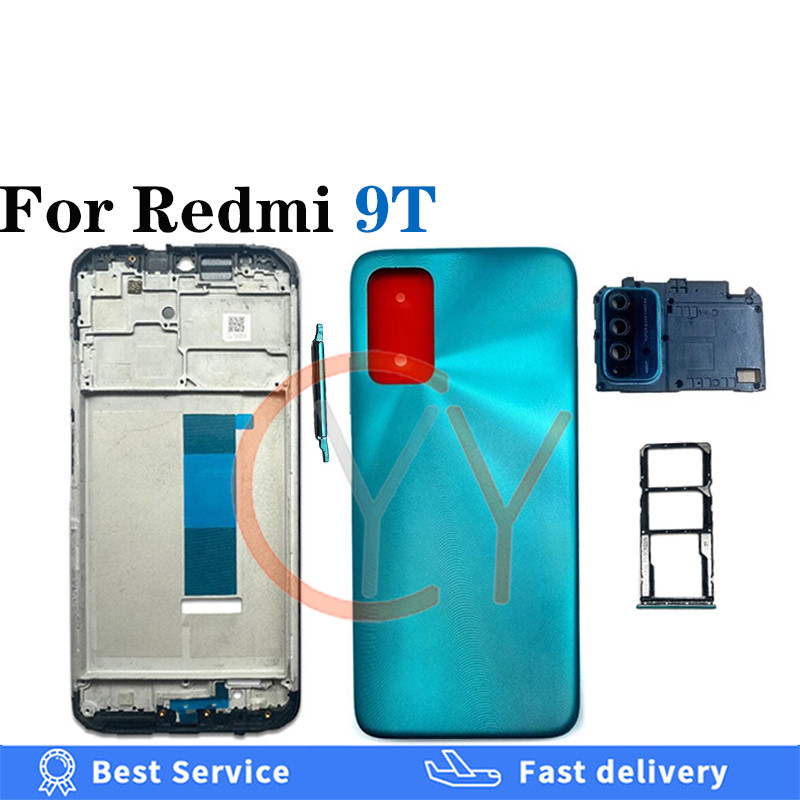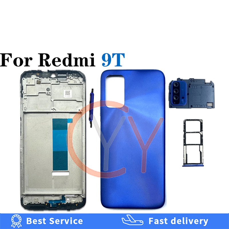 Para Redmi 9T Tampa Traseira Bateria Housingr Botão De Volume Liga/Desliga Da Carcaça Porta + Moldura Frontal LCD + Subs
