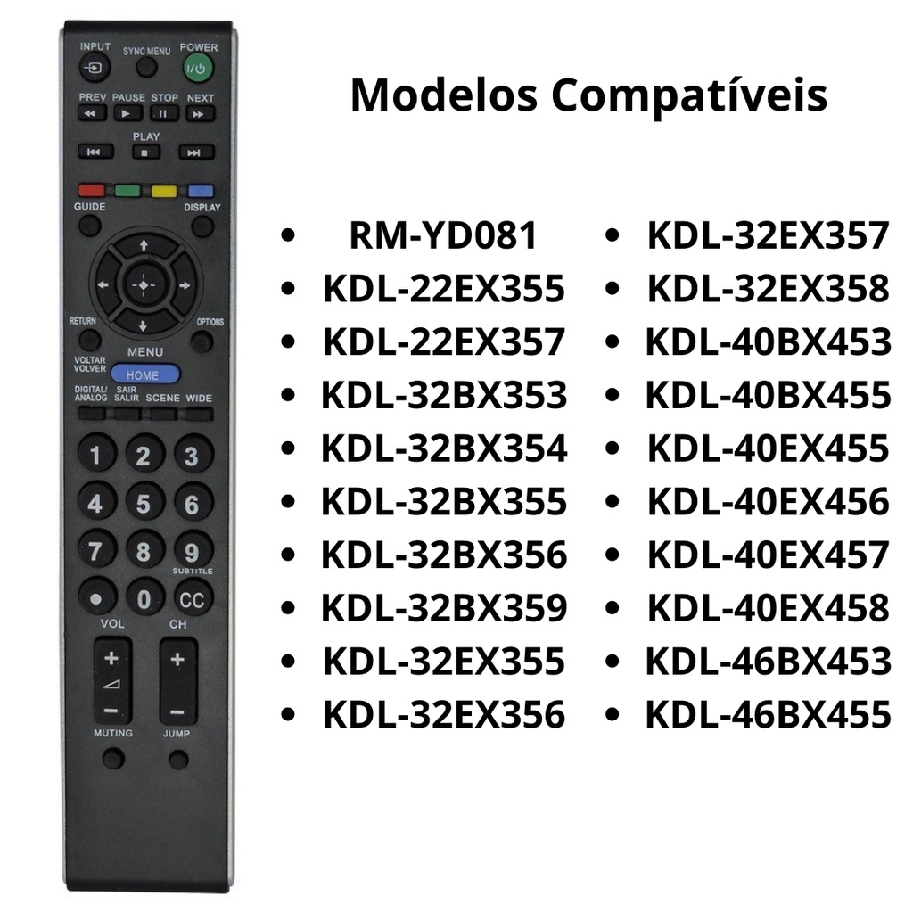 Controle Remoto para TV LCD / LED Sony Bravia - 7501 / RM-YD081 / KDL-22EX355 / KDL-22EX357