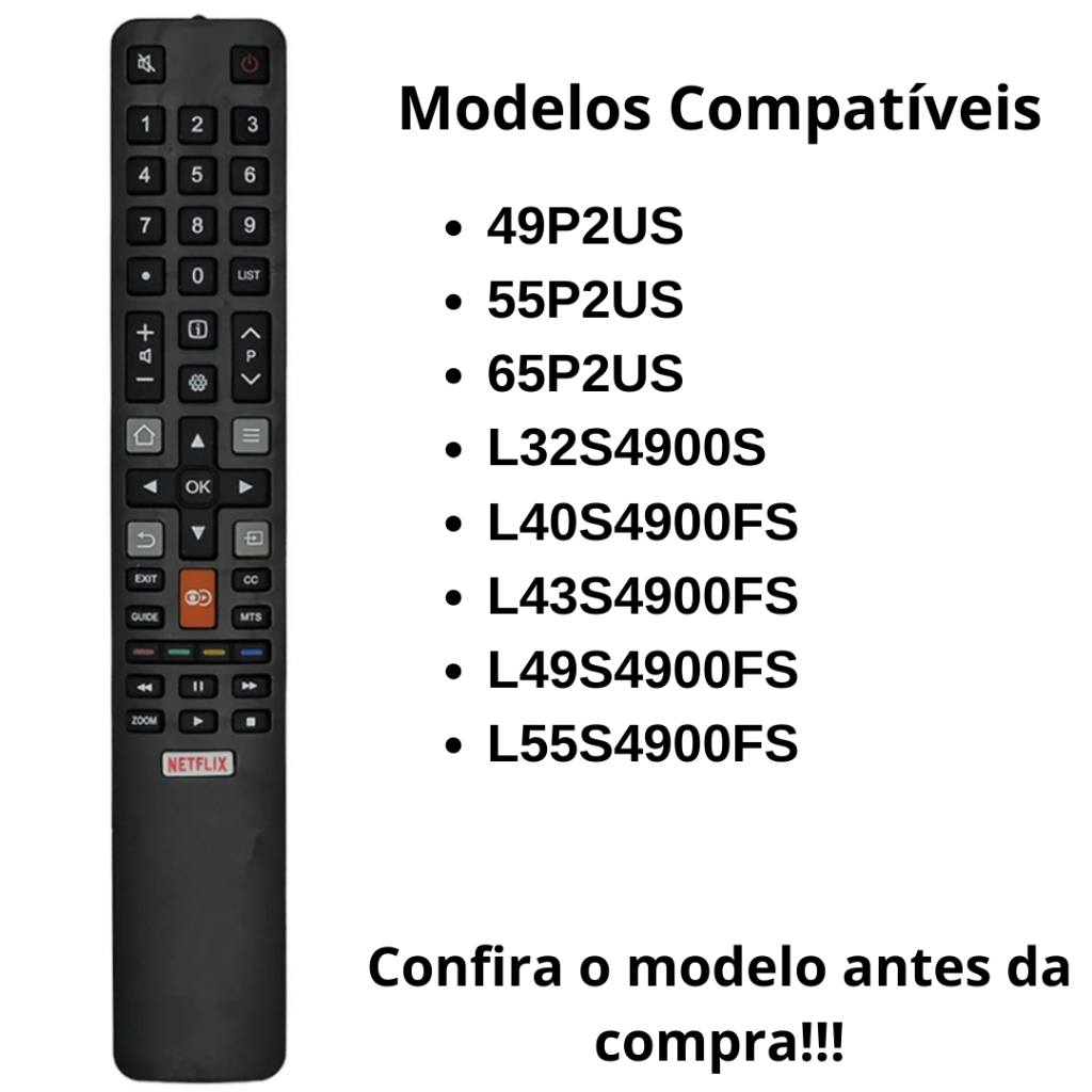 Controle Remoto TV LED TCL Smart com Netflix e Globoplay - 8027 / 49P2US / 55P2US 65P2US L32S4900S