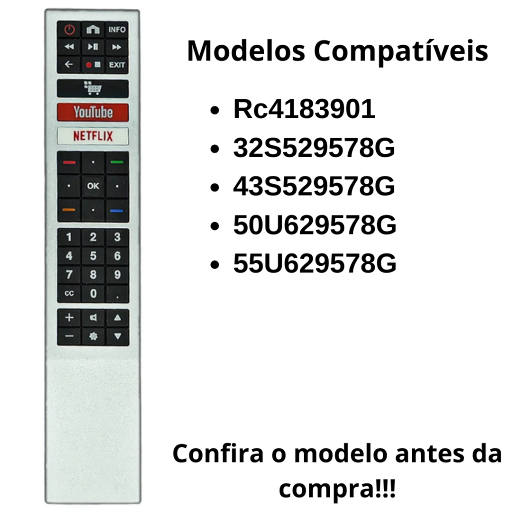 Controle Remoto Para TV LED AOC Smart com Netflix Rc4183901 / 32S529578G / 43S529578G - 9061