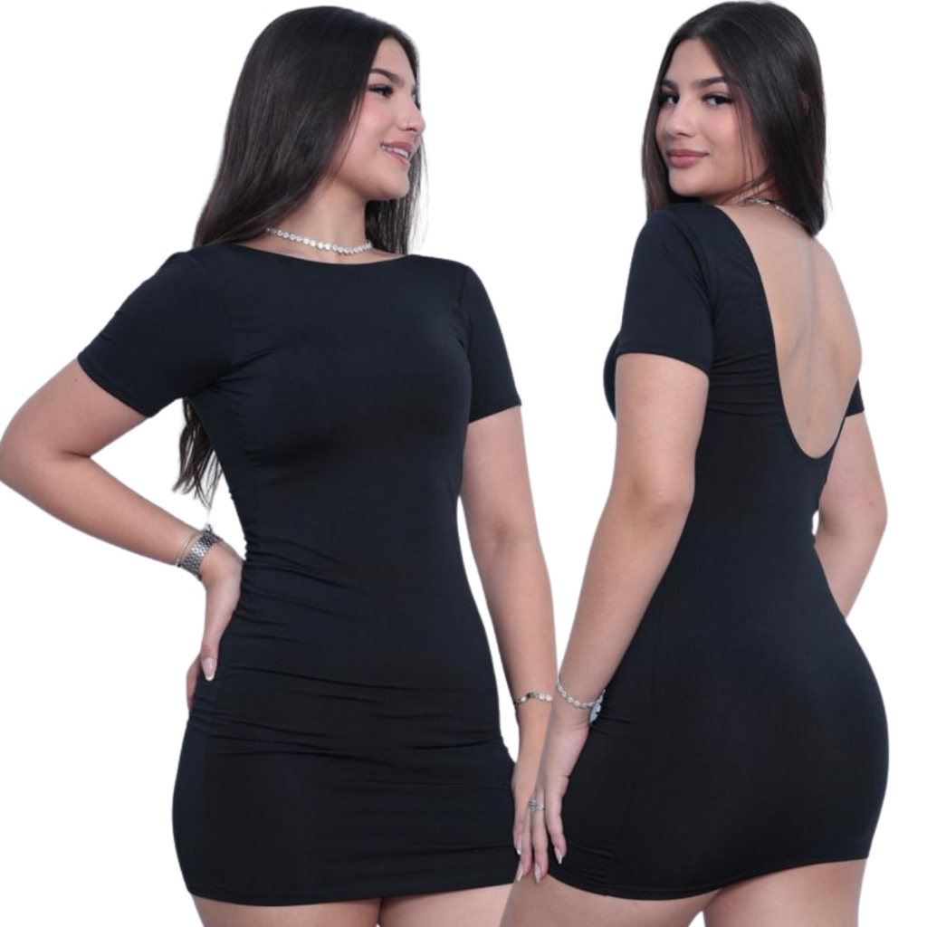 Vestido Costa Nua Manga Curta Colado Curto Feminino Tubinho Suplex de Poliamida