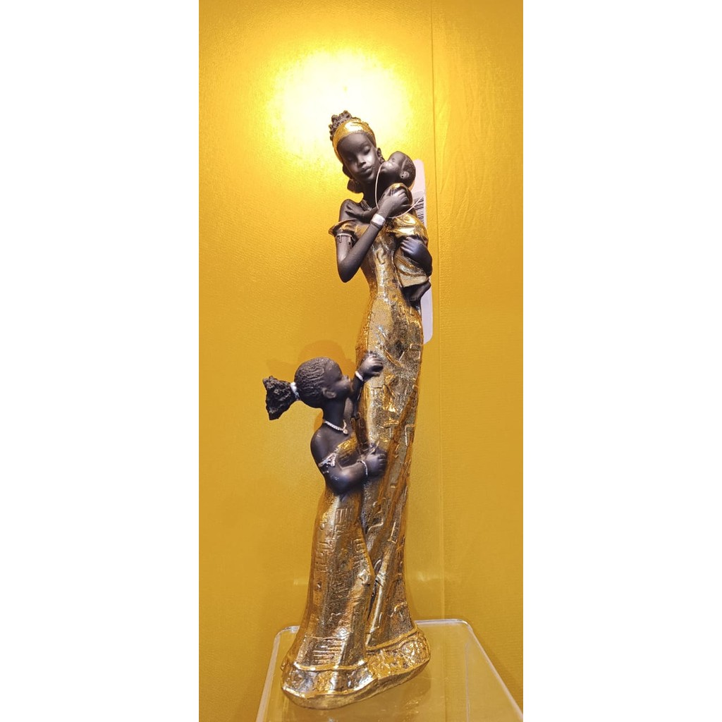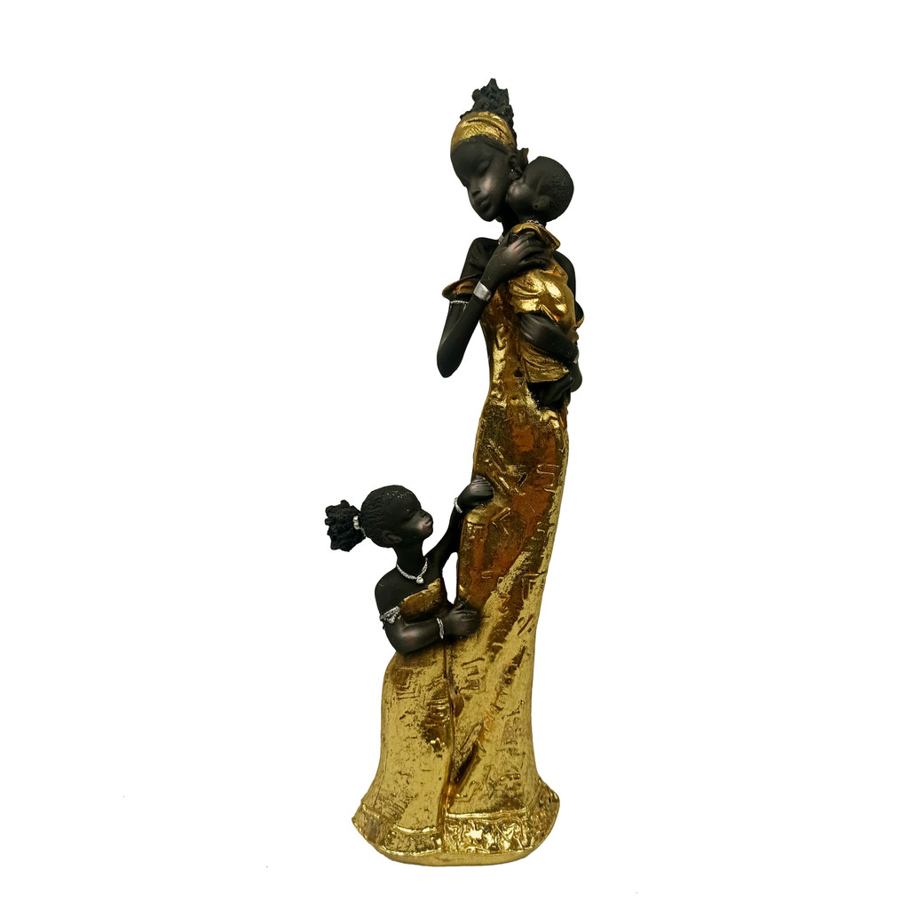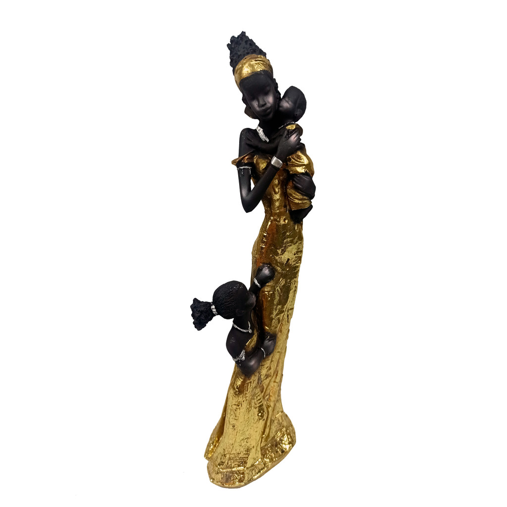 ESTATUA AFRICANA DOURADA CRIANÇAS RESINA DECORATIVO 28CM