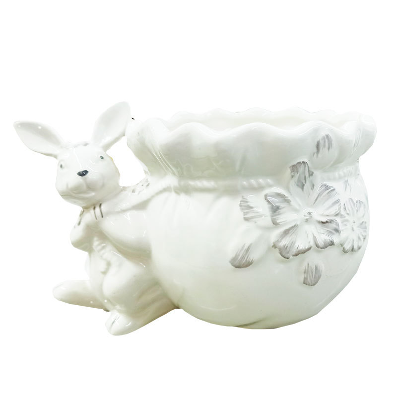 Vaso de Páscoa Cerâmica Coelho Decorativo 10cm