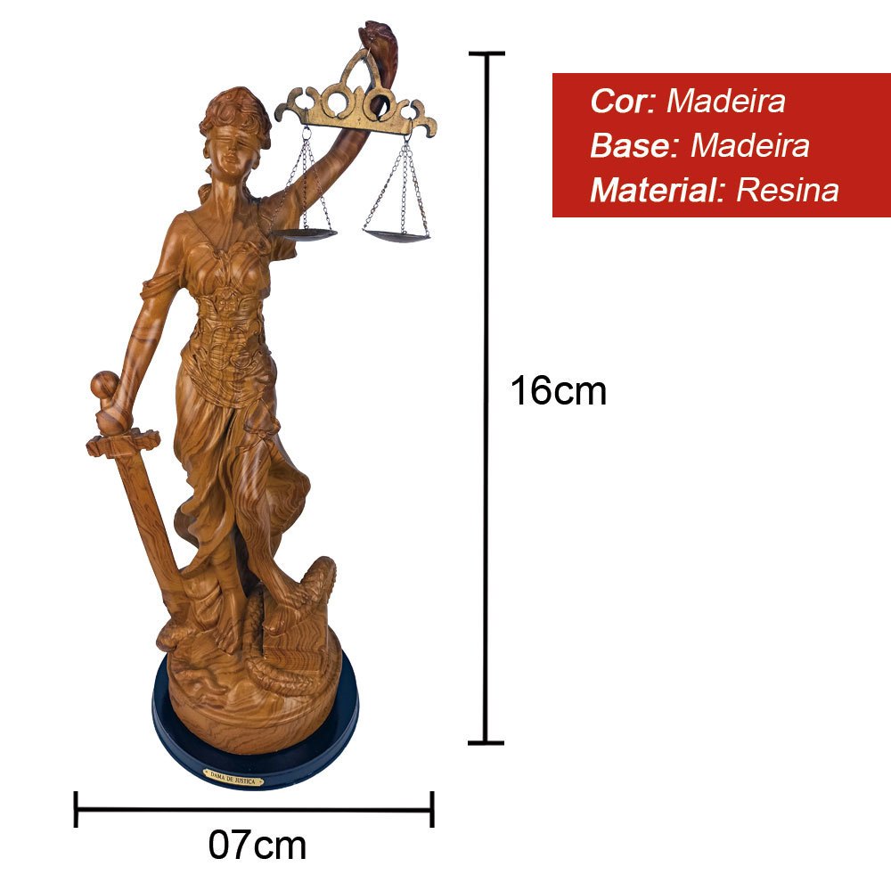 DAMA DA JUSTIÇA EM RESINA MADEIRADO 16CM