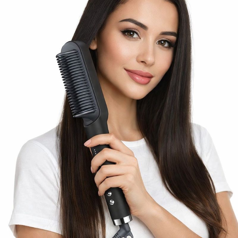 Escova Alisadora Profissional 5 em 1 Bivolt – Alinha, Modela, Anti-Frizz