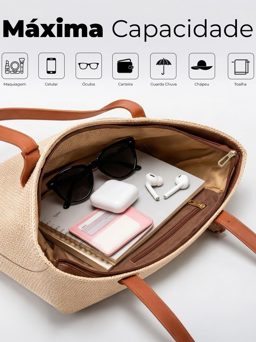 Bolsa de Praia Feminina Sacola Grande Shopbag Califórnia Palha