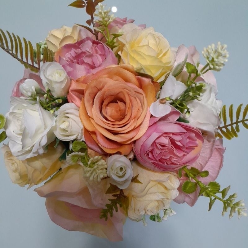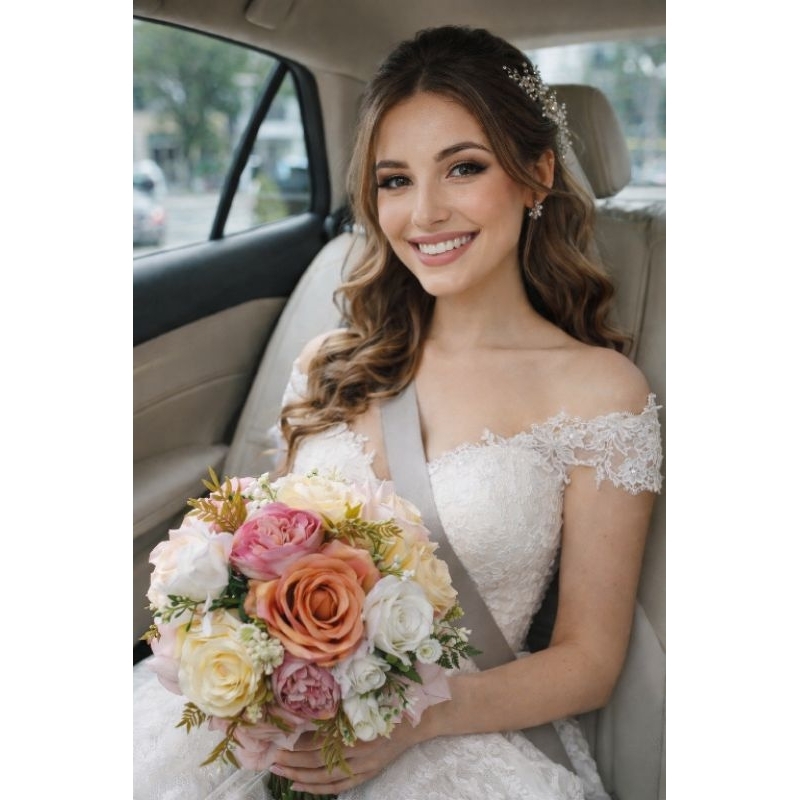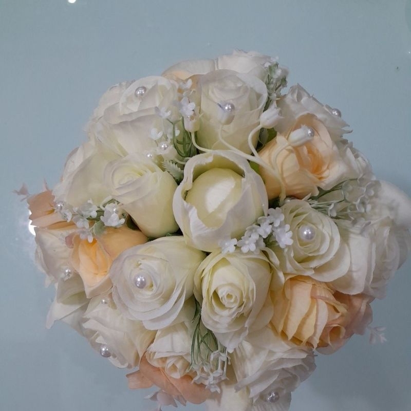 BUQUÊ DE NOIVA CASAMENTO /OFFWHITE ROSAS,ORQUÍDEA E COPO DE LEITE LUXO