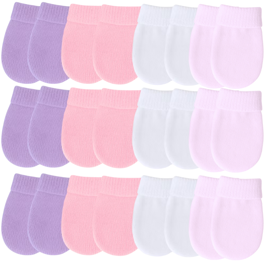 Kit 12 Pares de Luvas Lisas Para Bebê Recém Nascido RN Macia Confortável Maternidade Enxoval
