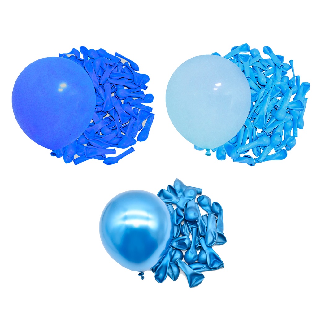 Kit 150 Balões Azul Claro + Escuro + Azul Metalizado - Balão Bexiga Liso/Cromado Para Festas e Aniversários
