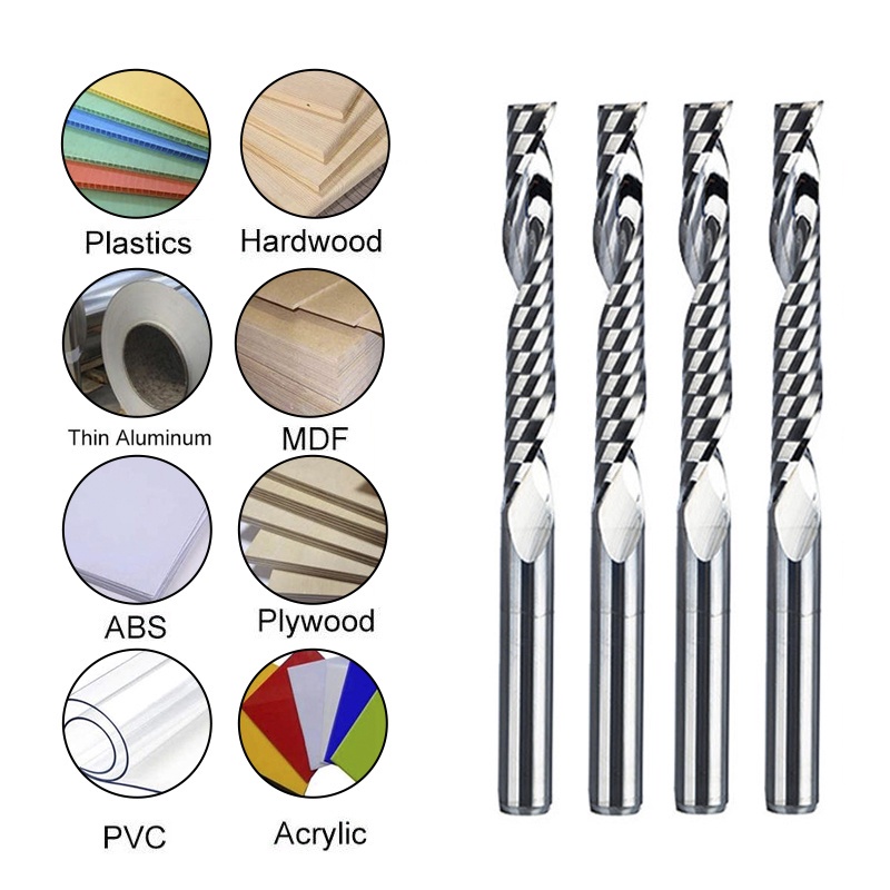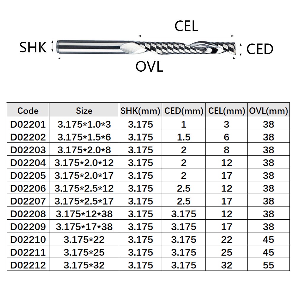 10pcs Fresa Em Espiral De 3,175mm Uma Só Flauta Tungstênio Roteador De Metal Duro Ferramentas CNC Para Madeira Acrílica