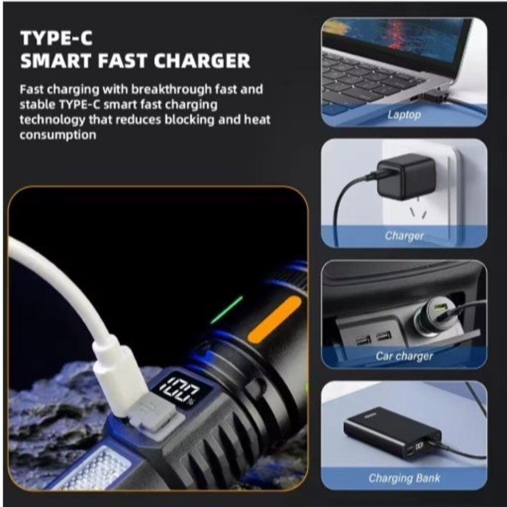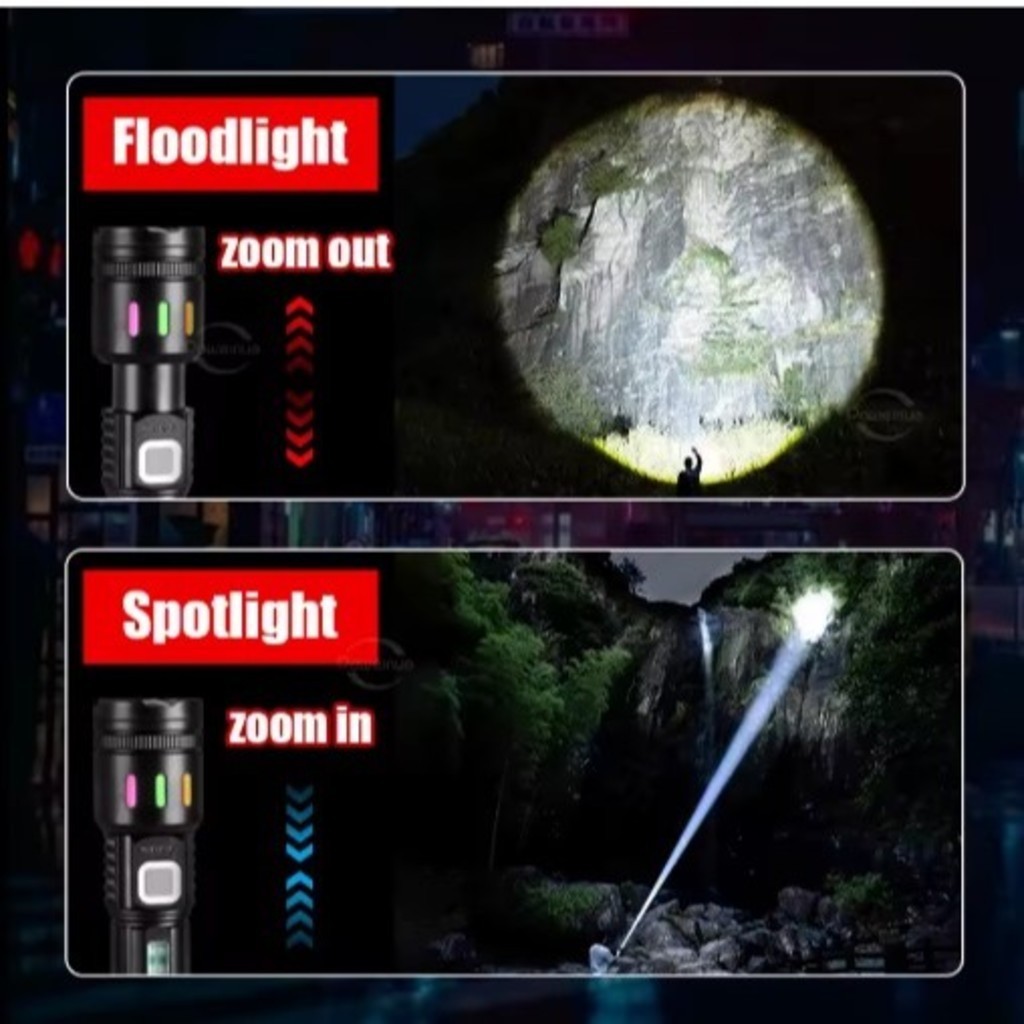 Lanterna Led Super Brilhante Alta potência 100000lm 5 Modos Recarregável.
