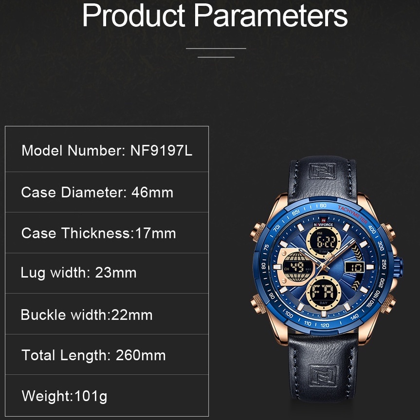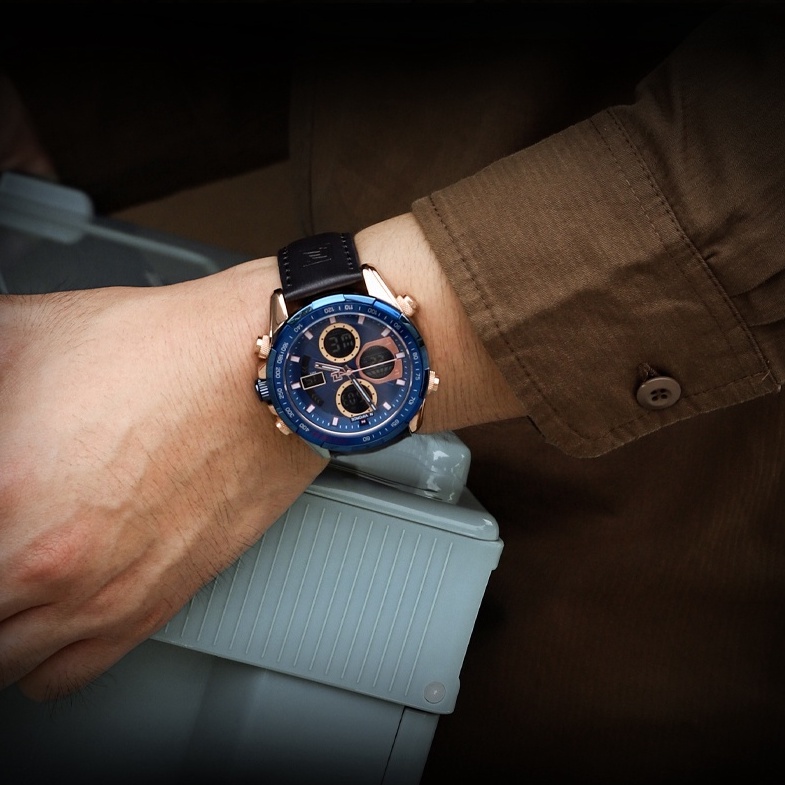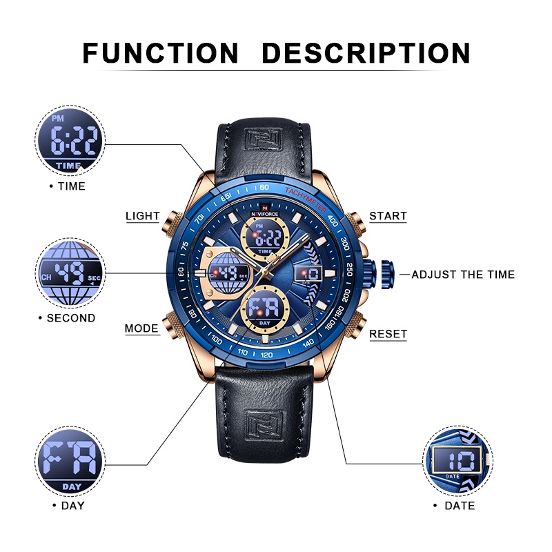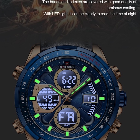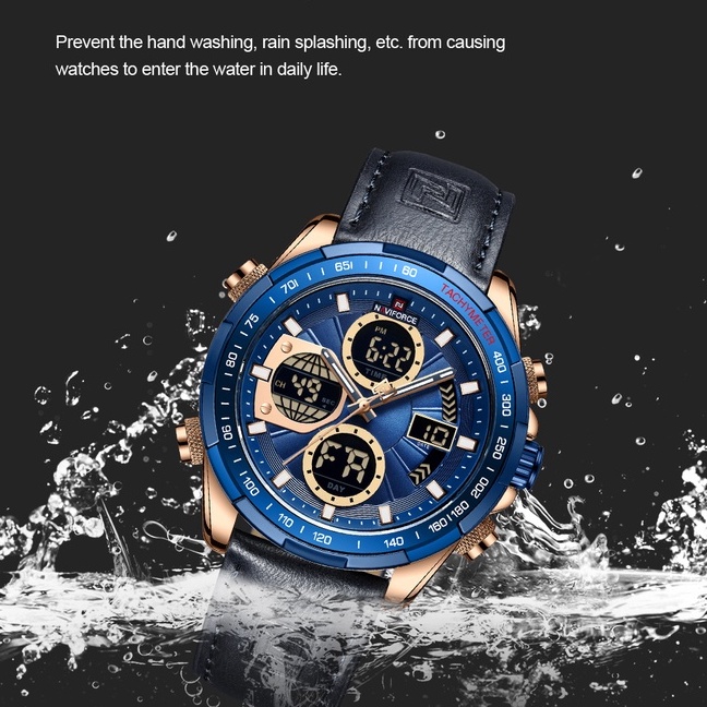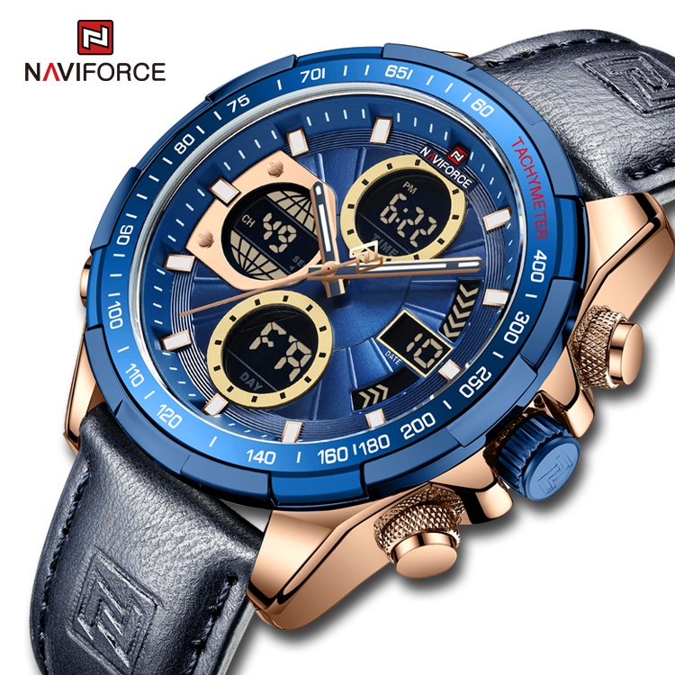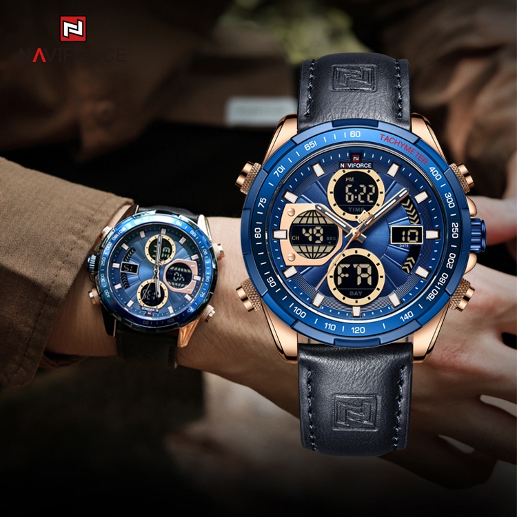 Relógio Masculino Naviforce Analógico Digital Quartzo De Couro À Prova D'água
