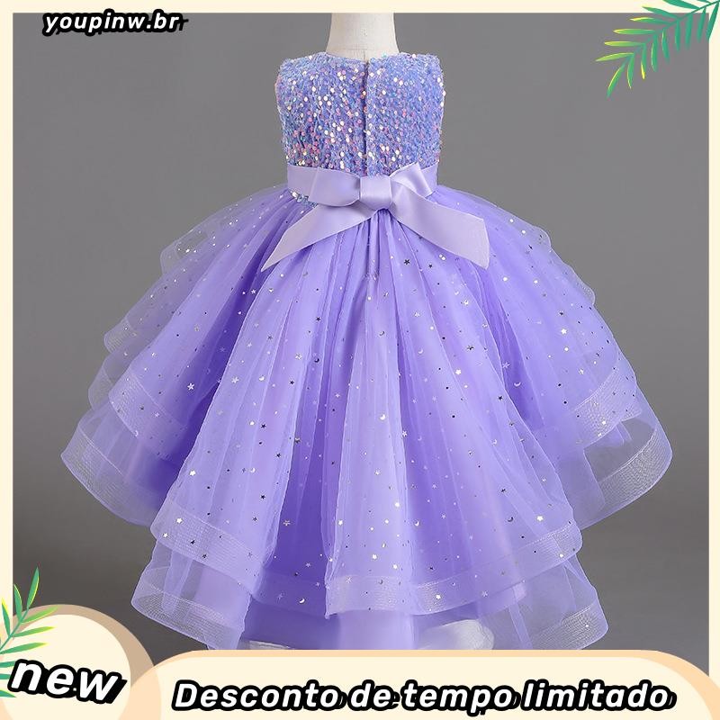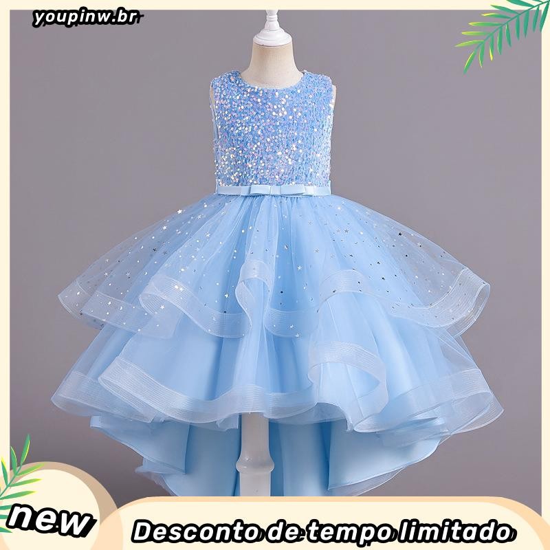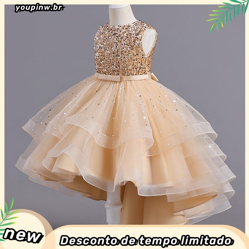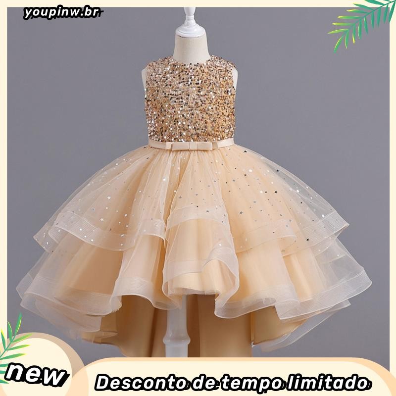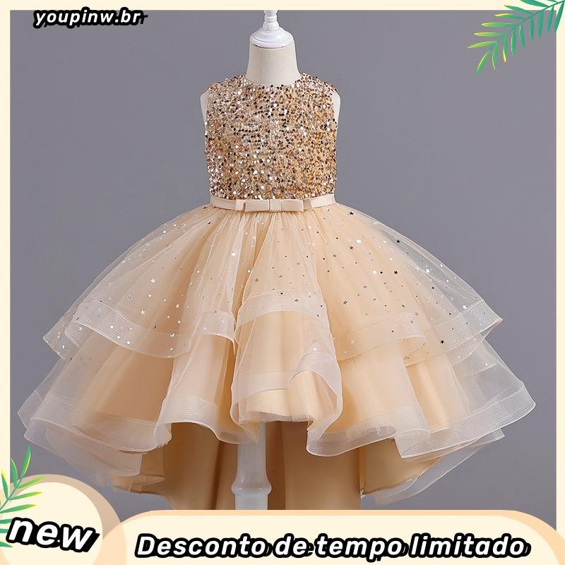 Meninas Princesas Lantejoulas Baby Solid Wedding Party Trailing Dress Crianças Juvenis Elegante Tank Top Performance Por
