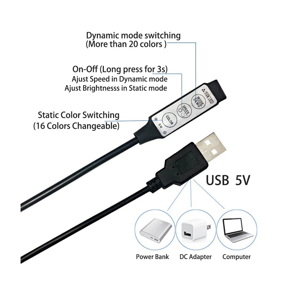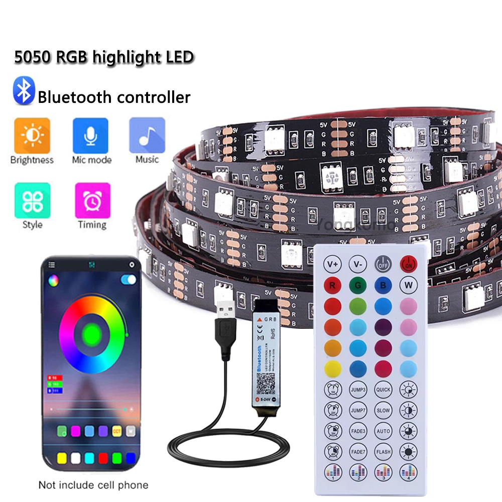 Tira LED USB , Faixa Adesiva Bluetooth 5V 5050 RGB , TV De Sala , Decoração De Atmosfera Flexível , Diodo