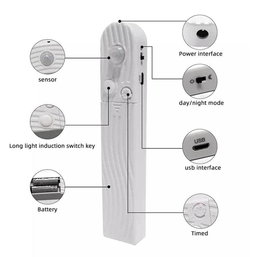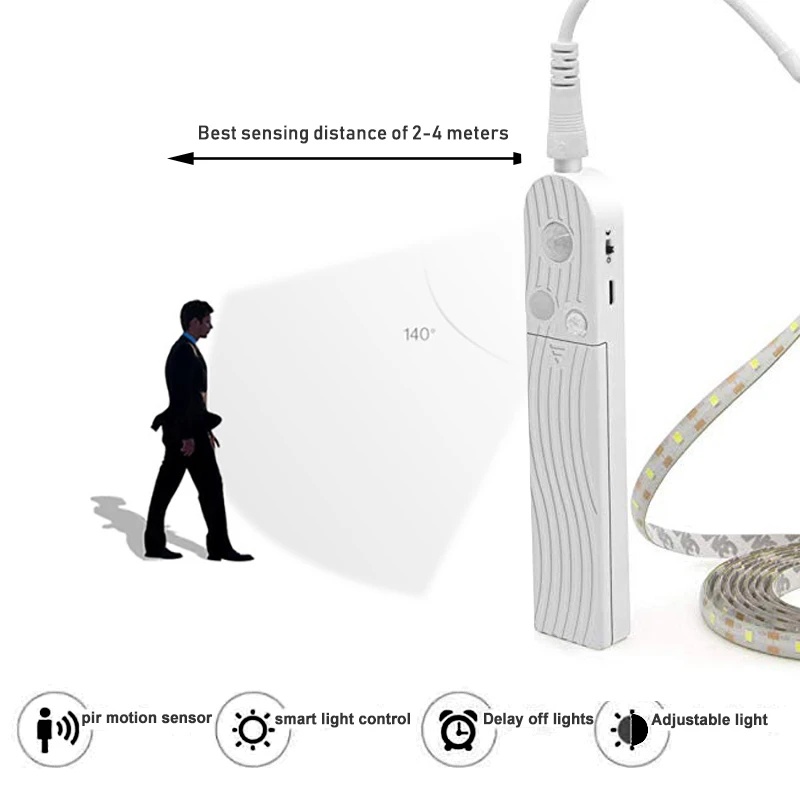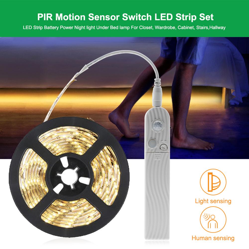 Luz LED com sensor de movimento PIR para escadas de armário de lâmpadas de cama