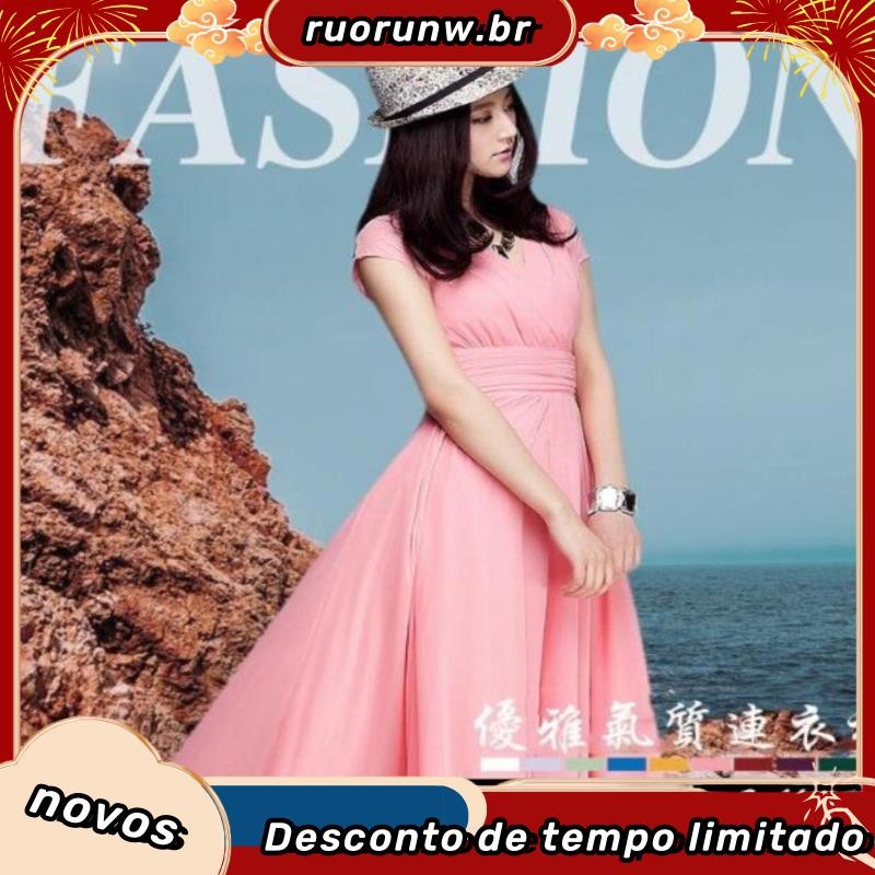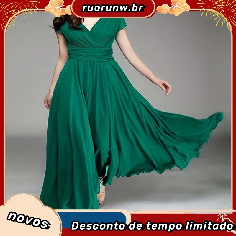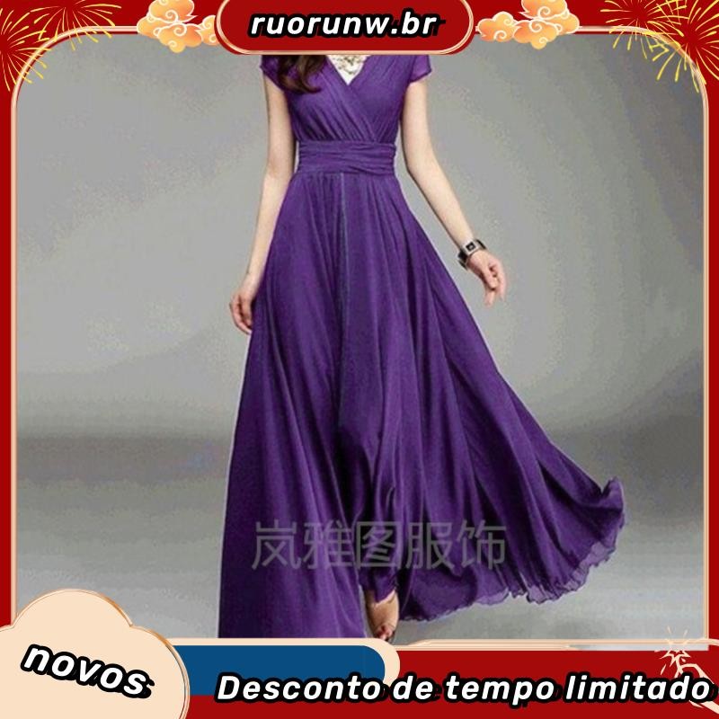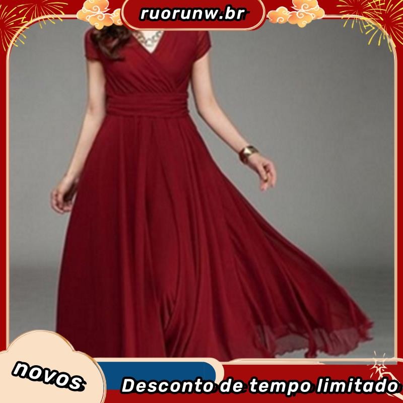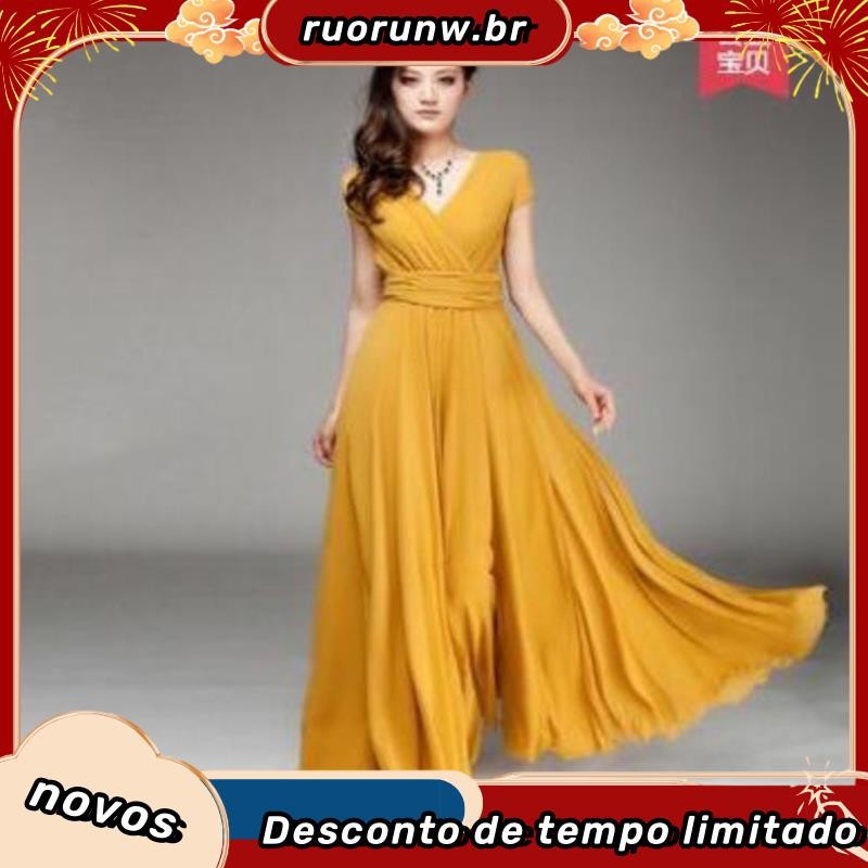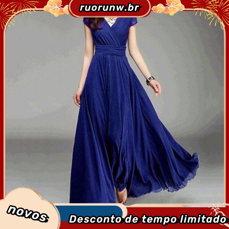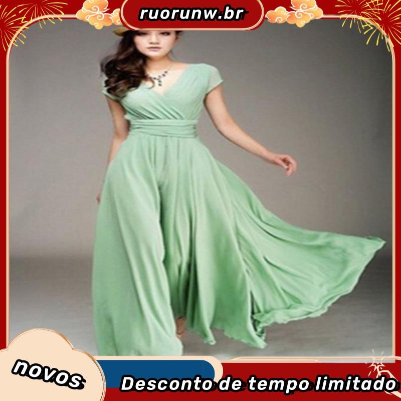 Vestido Boêmio Moda Feminina Longo Decote V Maxi De Festa Sem Mangas Plus Size