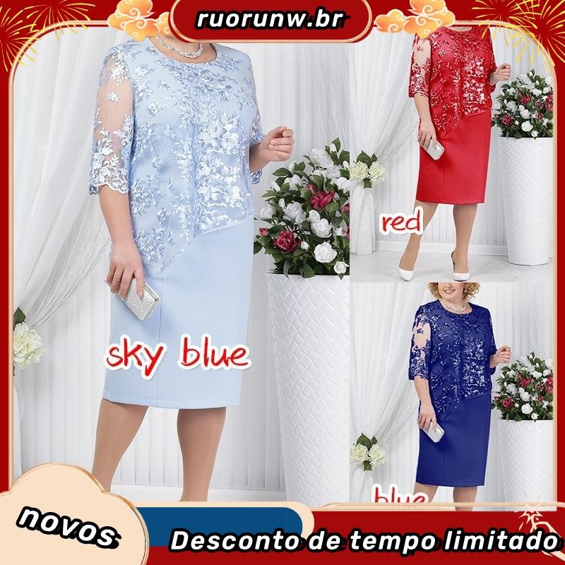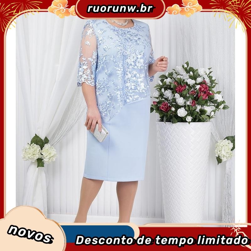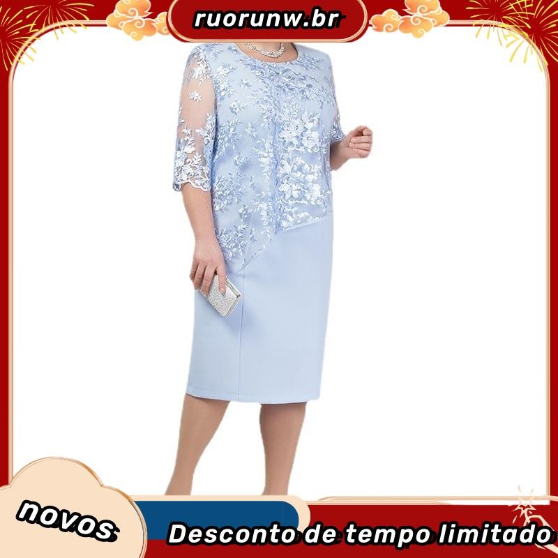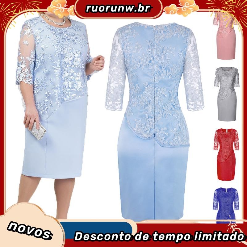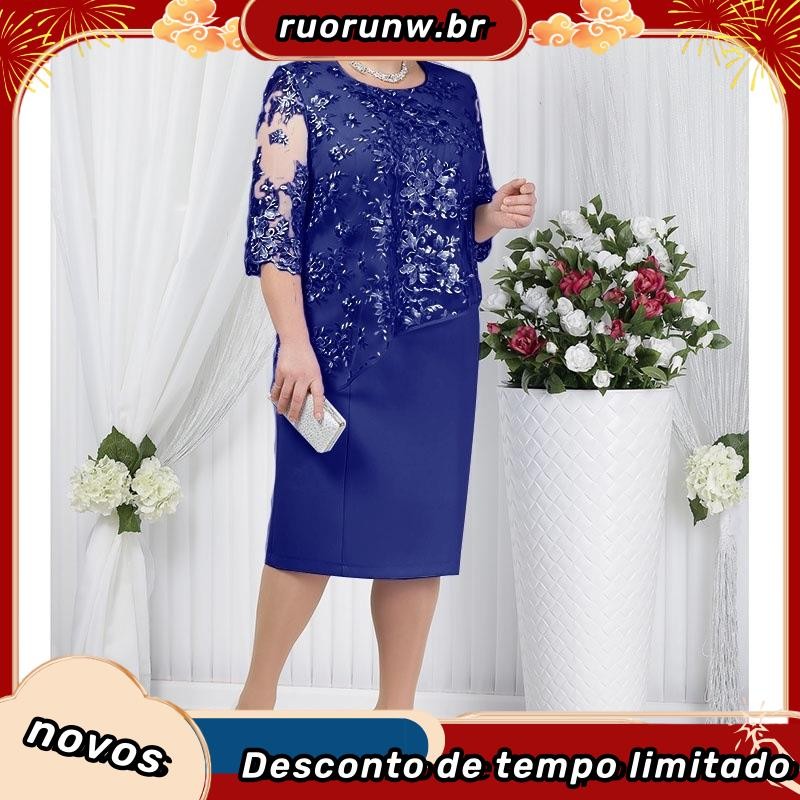 YYR-Vestido Midi Floral De Renda Com Manga Média Plus Size Para Festas
