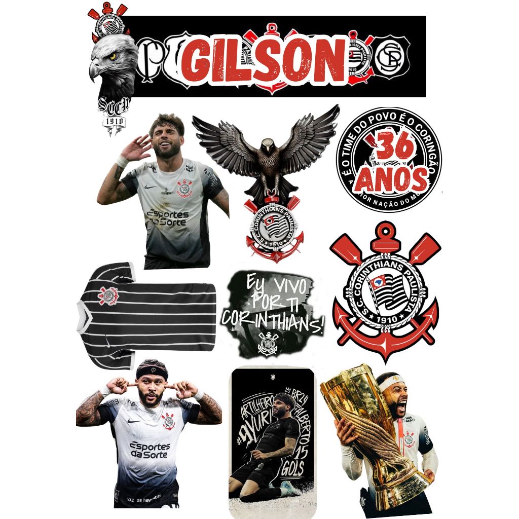 (Topper)Topo de Bolo CORINTHIANS M. DEPAY e YURI Personalizados para Aniversários e eventos