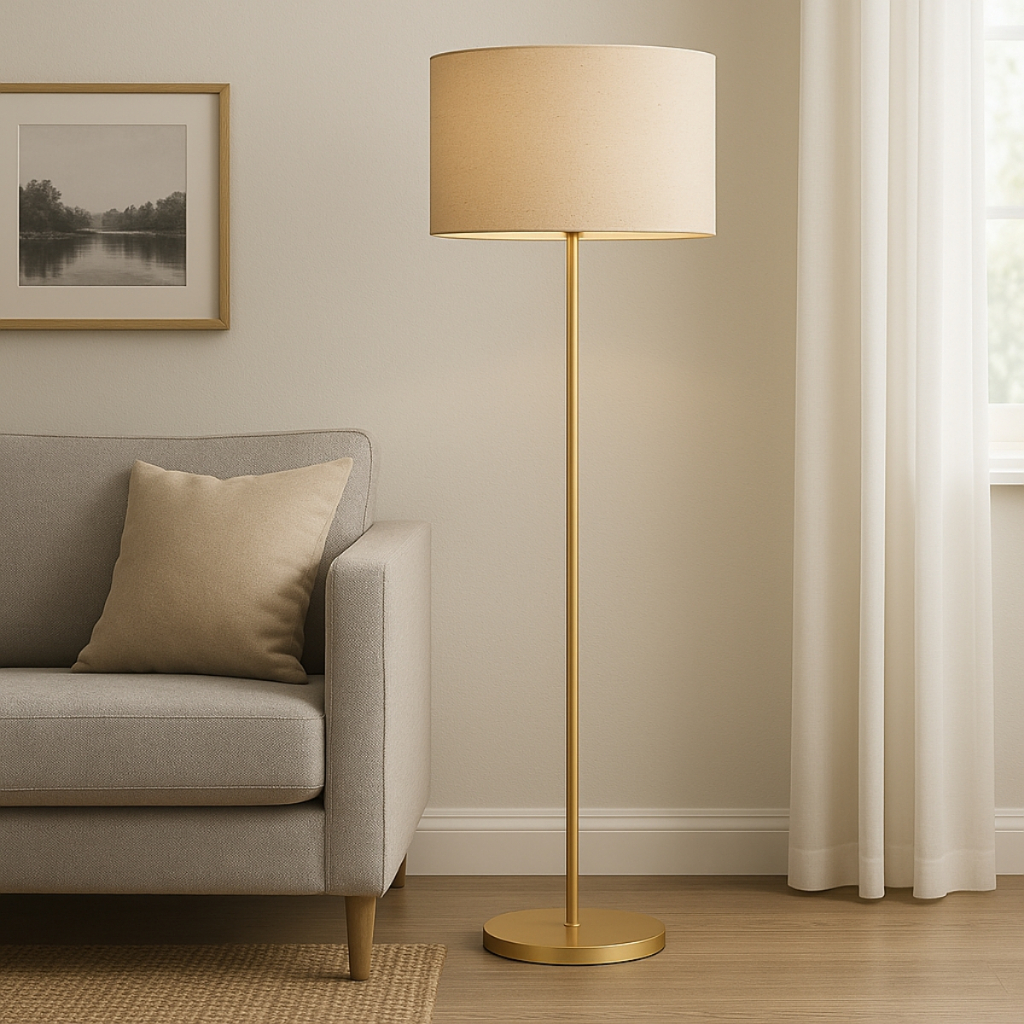 Abajur De Chão Suécia 40x165 Luminária Com Cúpula De Tecido Para Sala Quarto
