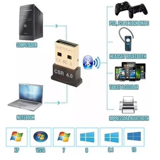 Mini Adaptador Bluetooth 4.0 USB Para Pc Ou Note - Windows 7 8 10