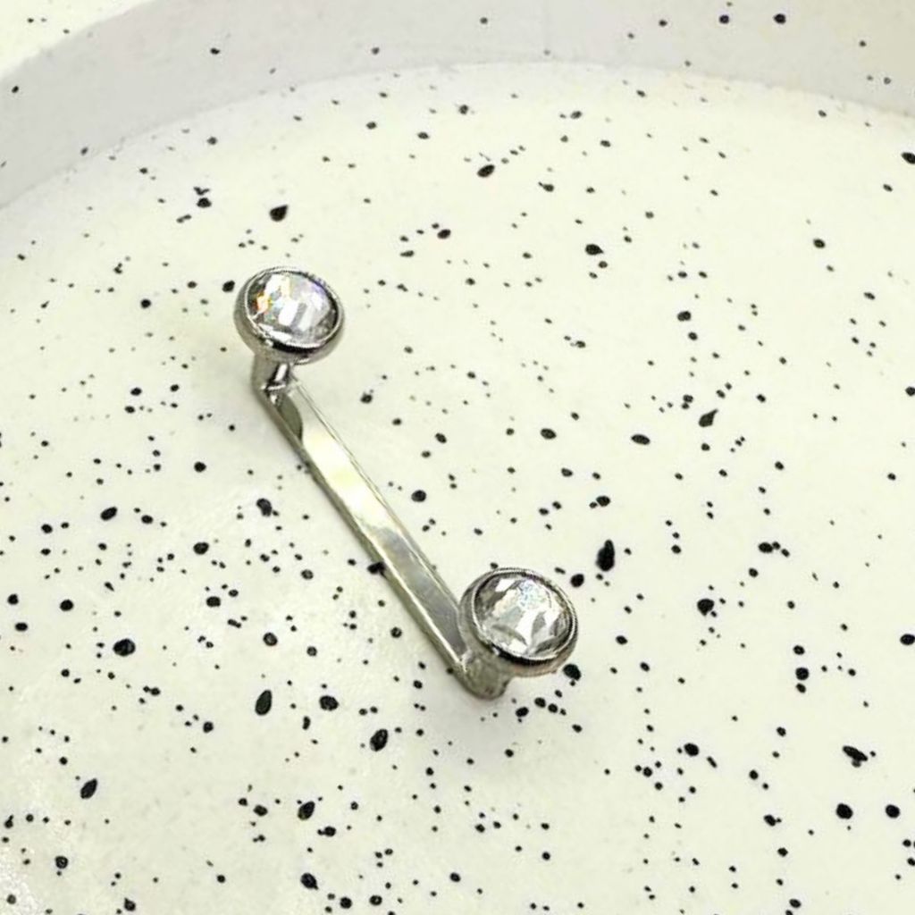 Piercing De Titanio Surface Duas Pedras Zirconias 14mm Perfuração Body Piercing Prateado