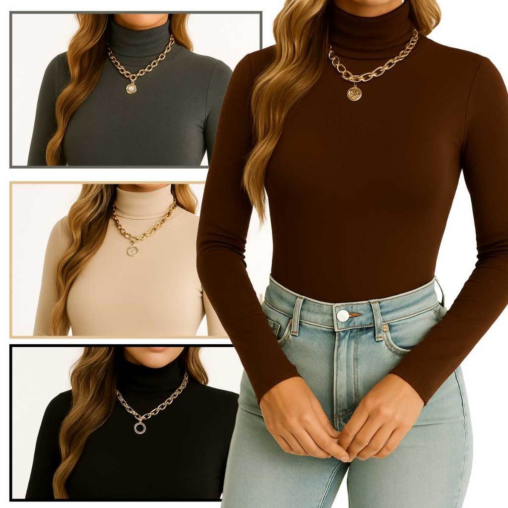 Body Feminino Manga Longa Gola Alta Cacharrel – Malha Confortável Inverno