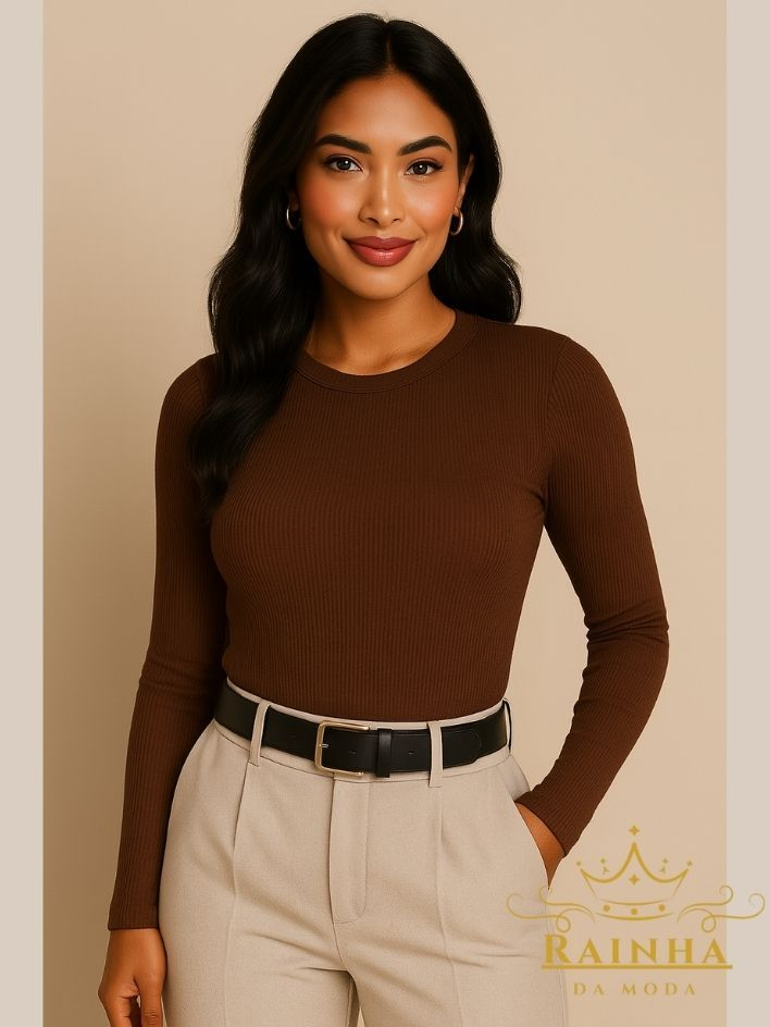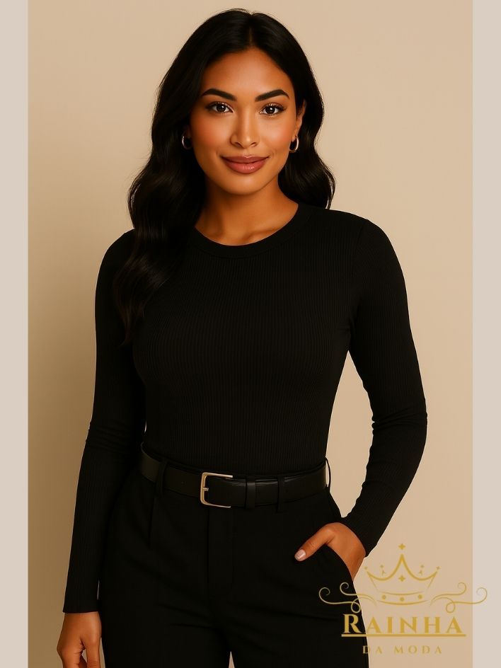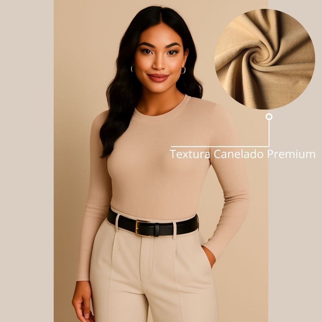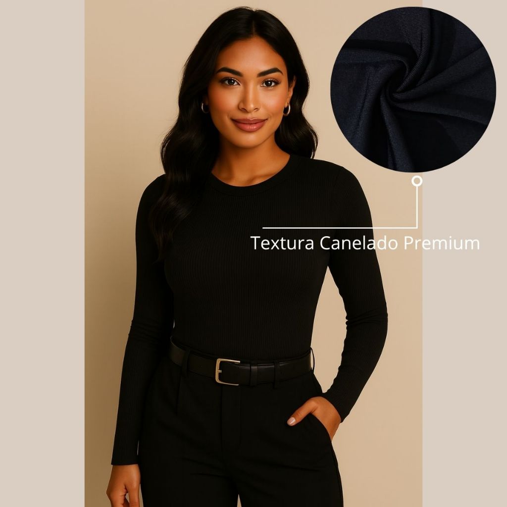Blusa Feminina Manga Longa Segunda Pele LISA TÊNDENCIA Confortável Elastano Premium Outono Inverno