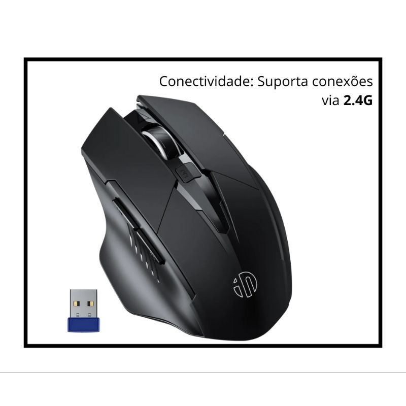 Mouse Inphic 2.4g com cabo USB-C recarregavel, execelente design e ergonomia