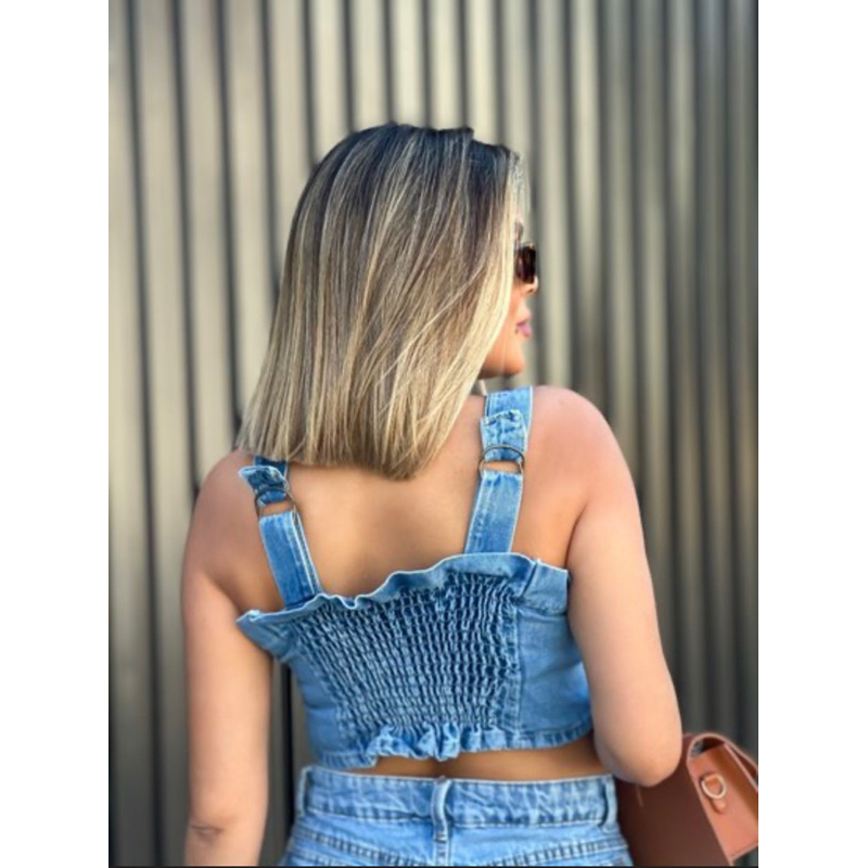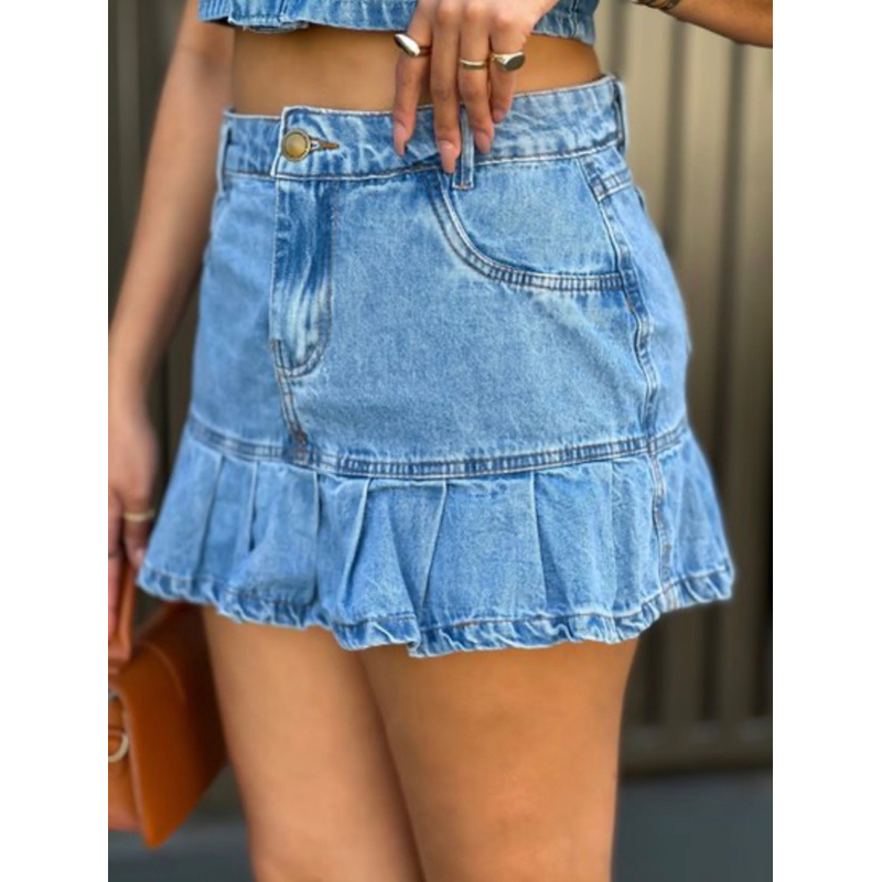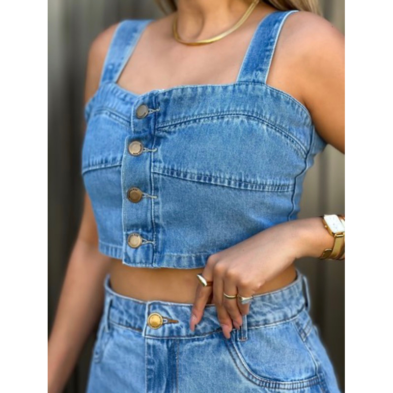jeans com cropped e saia Conjunto Feminino 8101