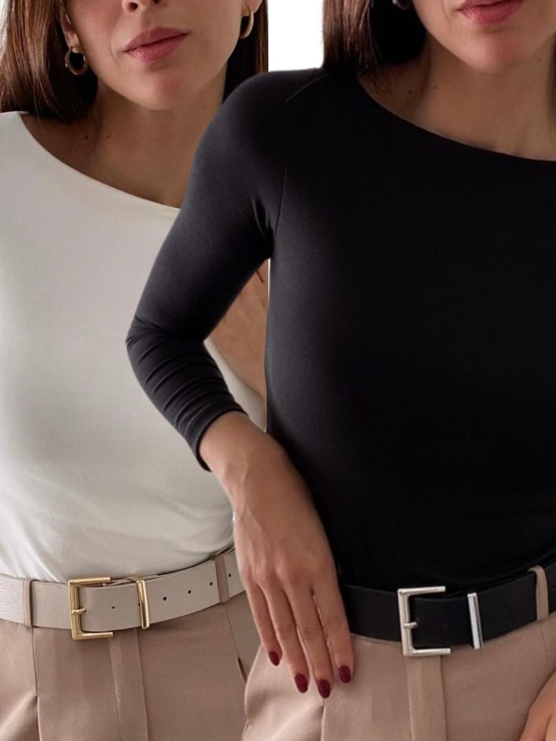 Body Collant Feminino Manga Comprida Suplex Gola Baixa Canoa Térmica
