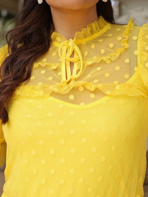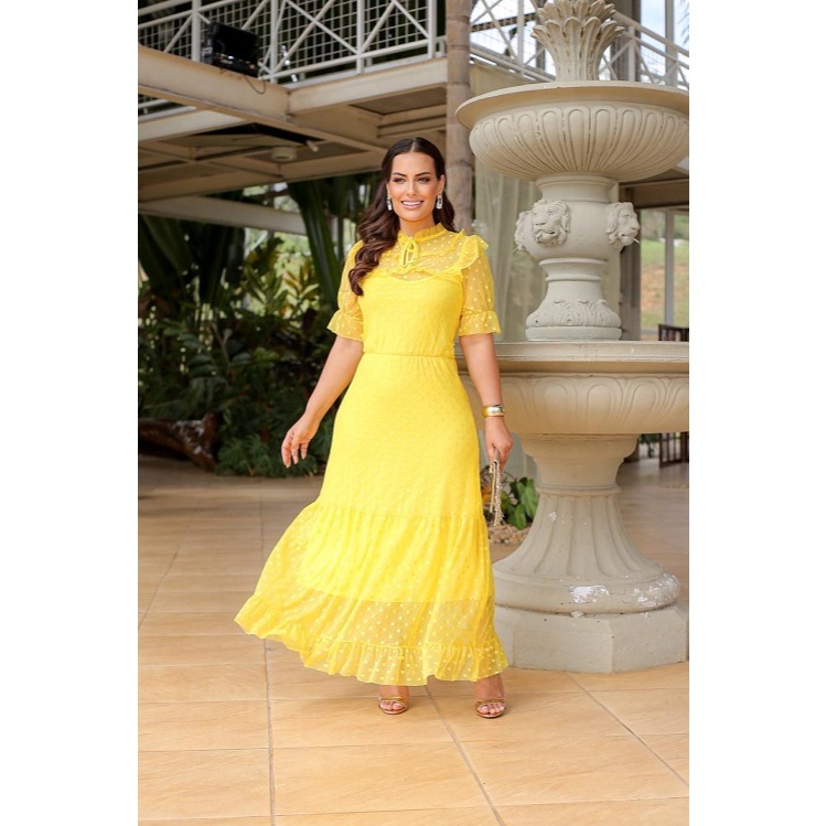 Vestido Clarice Longo Poá em Tule Forrado Moda Evangélica -Casamento Festa Noivado