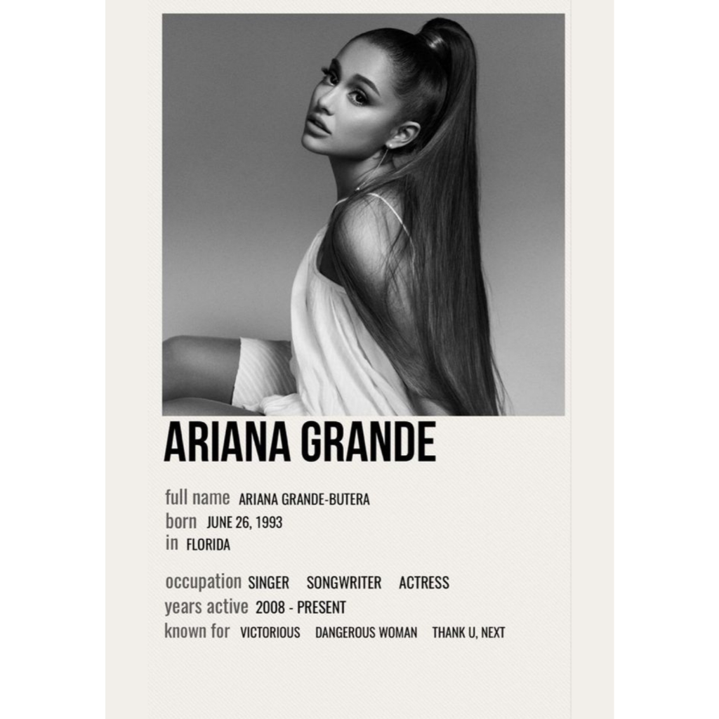 Pôster Premium Ariana Grande - Várias opções - Tamanho a4 20x30 cm