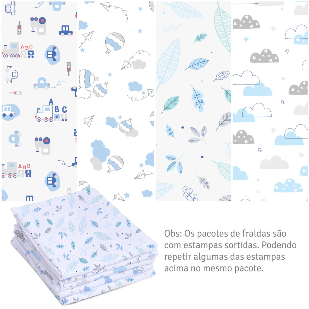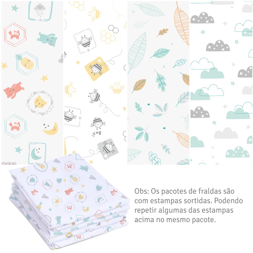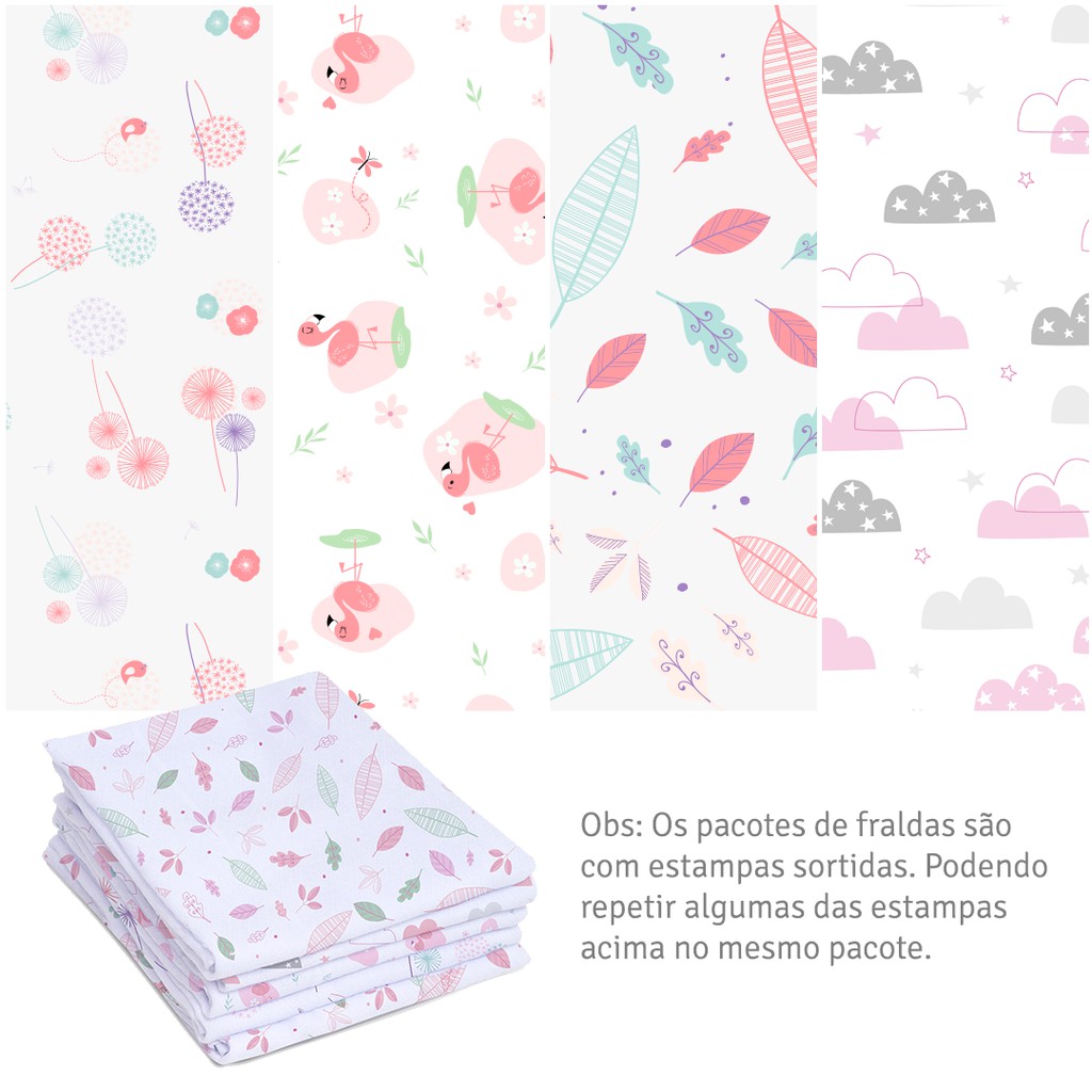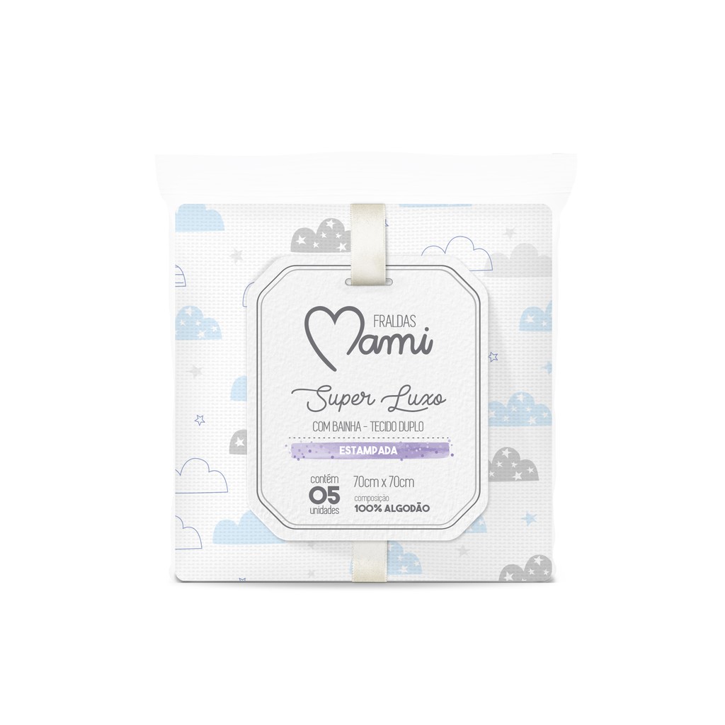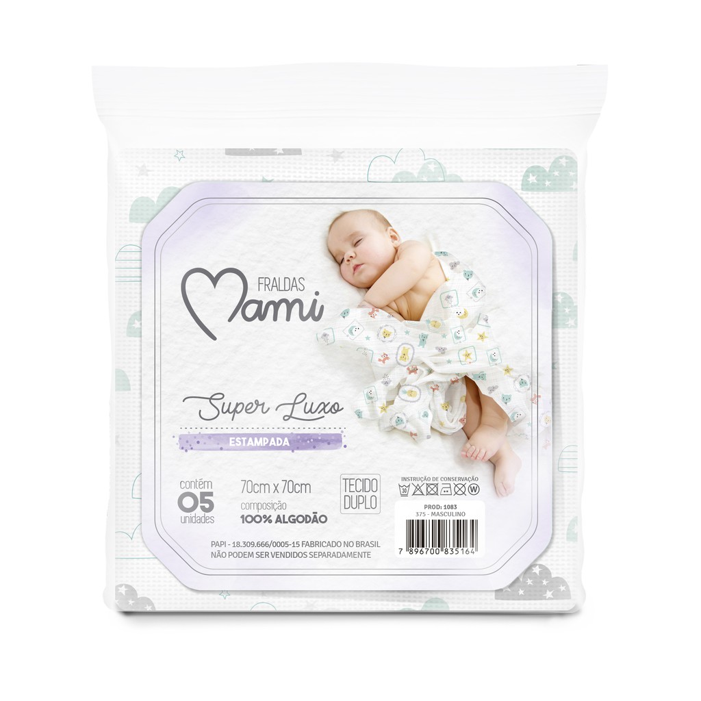 FRALDA C/ BAINHA TECIDO DUPLO SUPER LUXO 70cm x 70cm - 100% Algodão Mami 5 Unidades