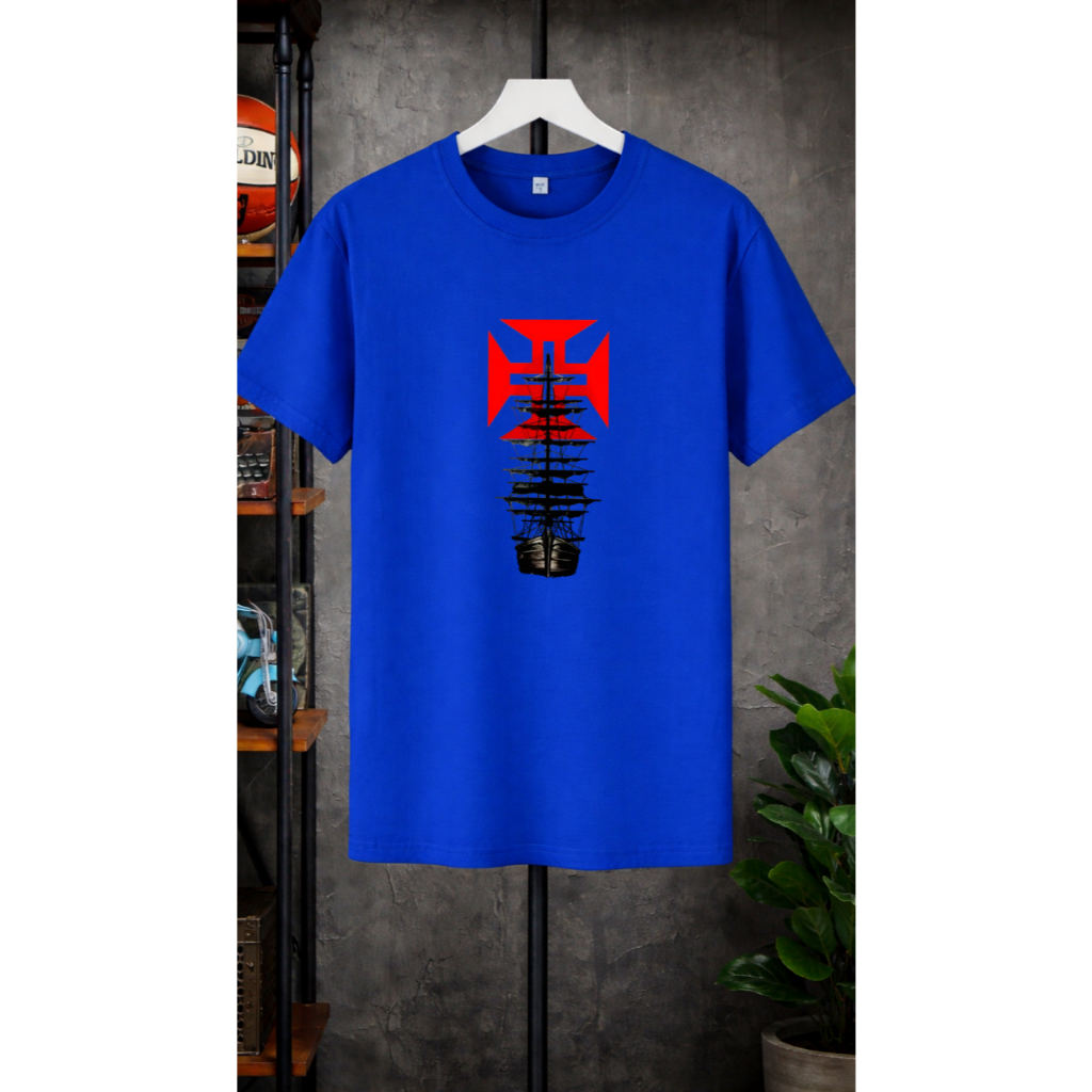 Camiseta Vasco da Gama Unissex Estampa Navio Retrô Cruz Vermelha Algodão Premium
