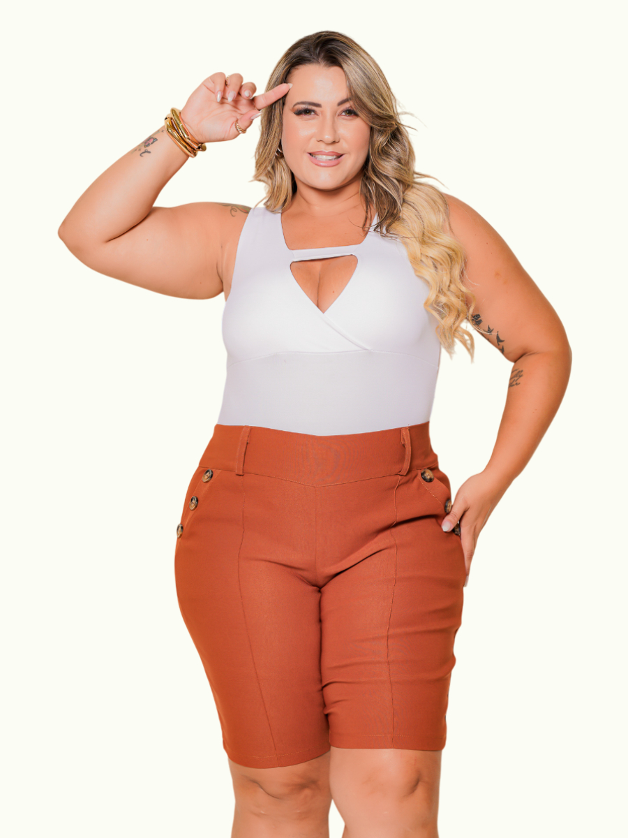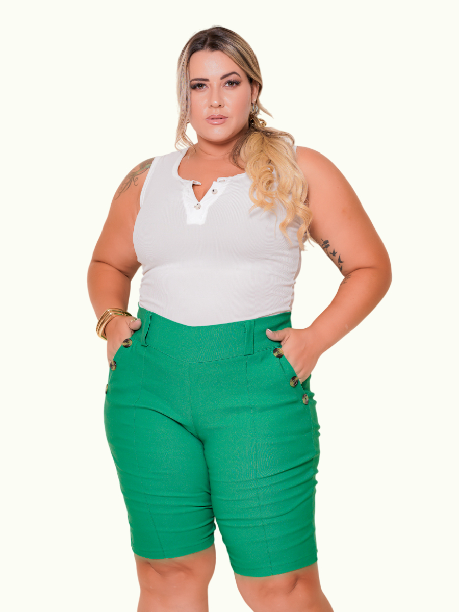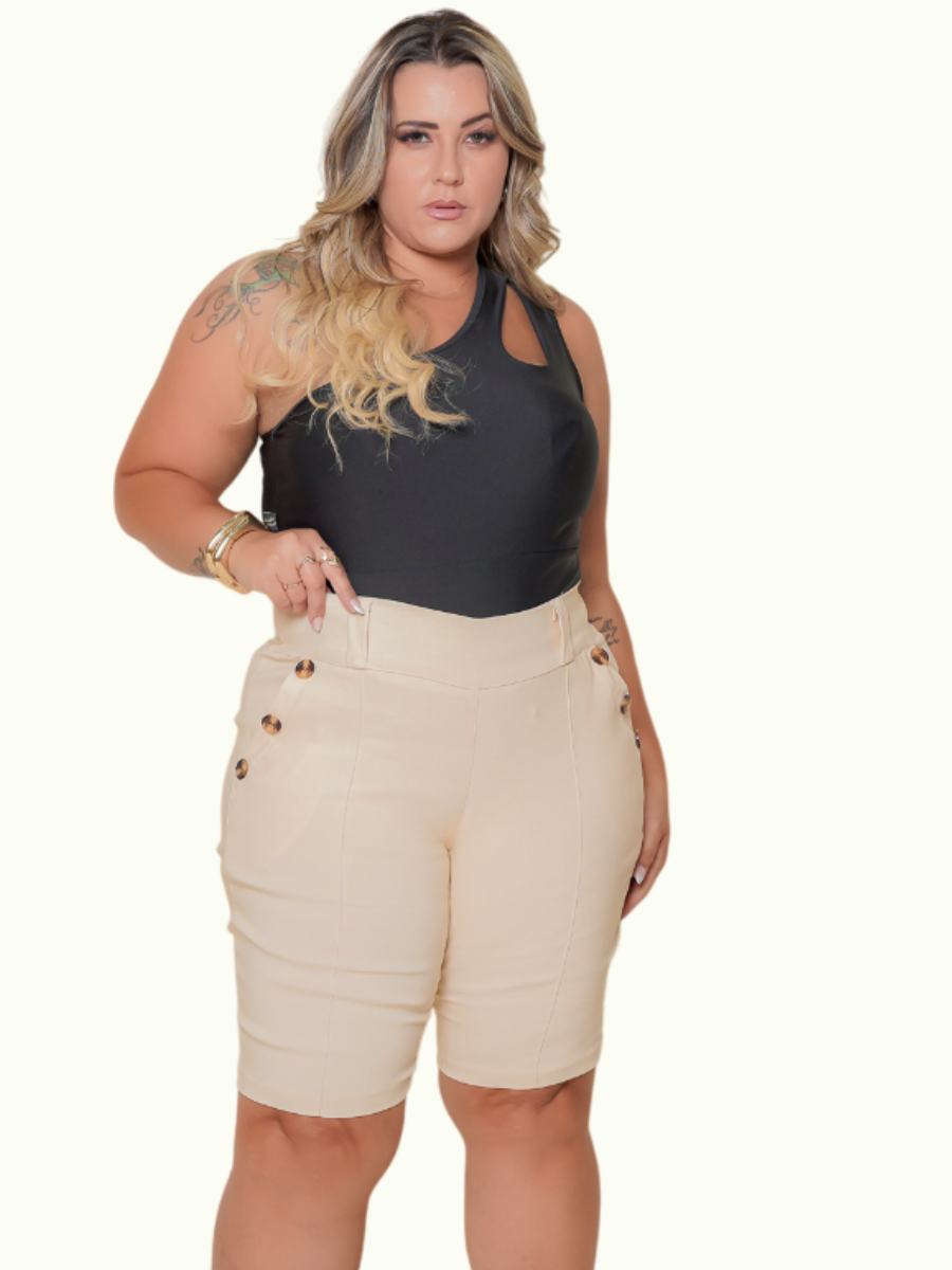 Kit 3 Bermudas Femininas Plus Size Botões Nas Laterais Modelo Grande Estica / Veste 44 até 52