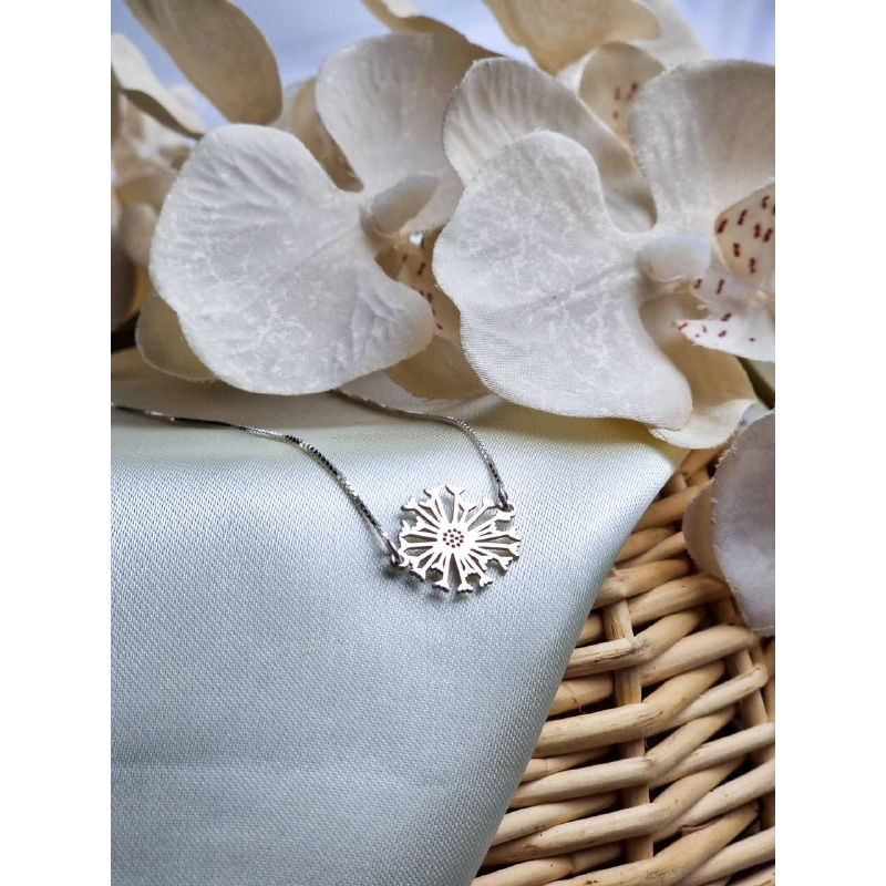 Pulseira de Prata Dente de Leão Vazado Sorte Minimalista Natureza