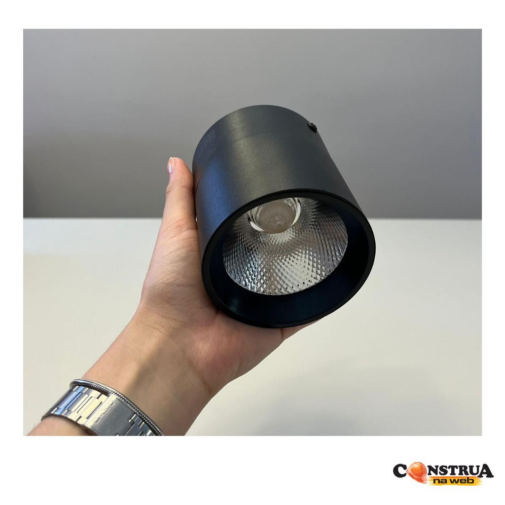 Kit 6 Spot Sobrepor Preto Redondo Direcionável 20w 3000k