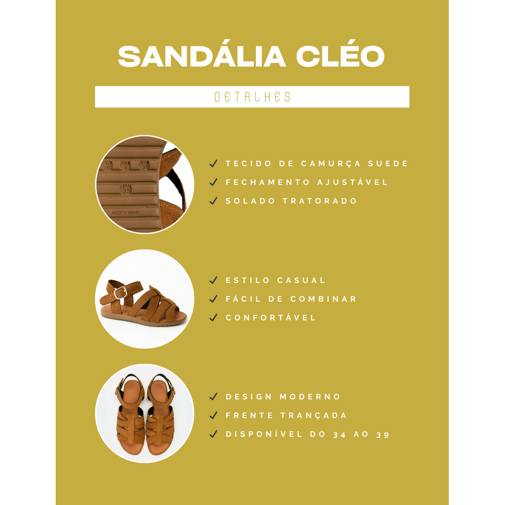 Sandália Feminina Rasteira Confortável Solado Tratorado Leve Fisherman Cleo