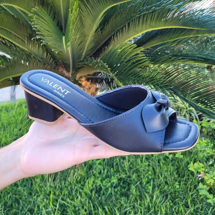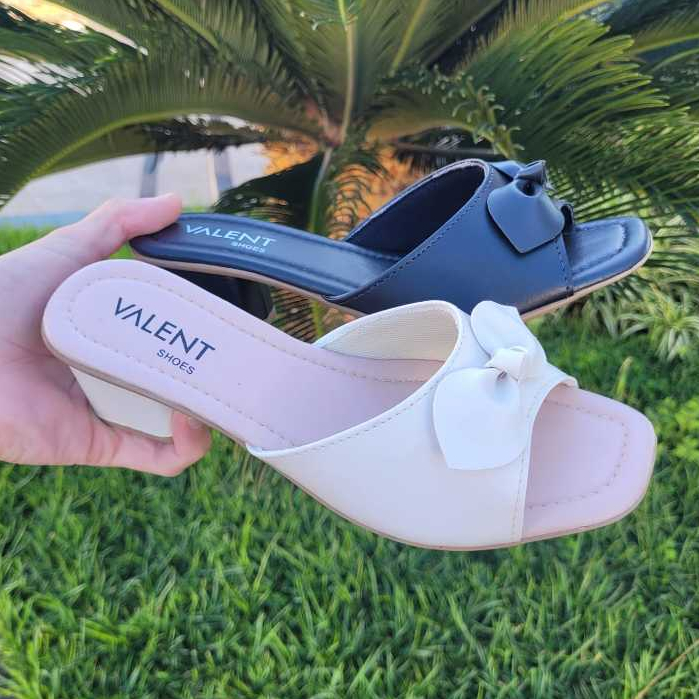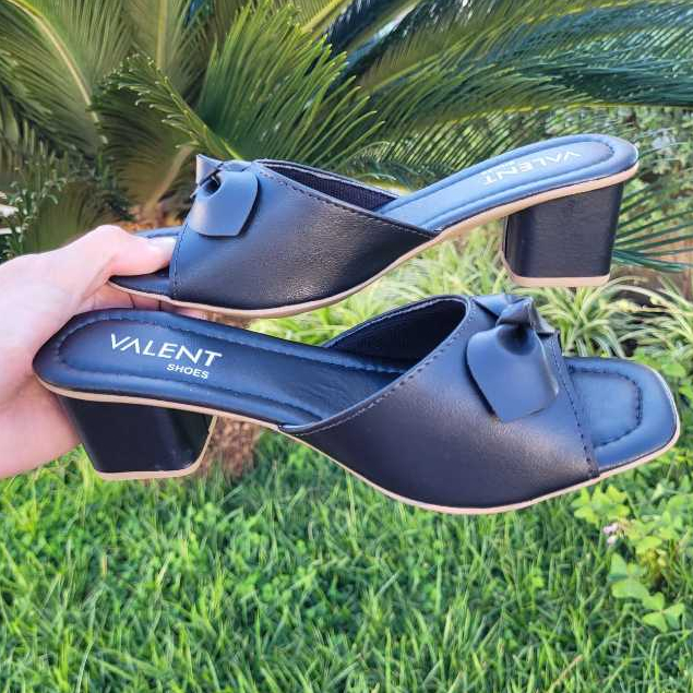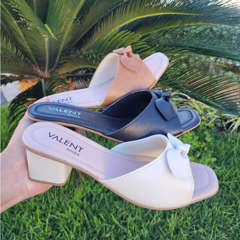 Kit 2 Sandália Tamanco Feminino com Laço Calce Facíl Leve Macio Salto Bloco Grosso Confortável