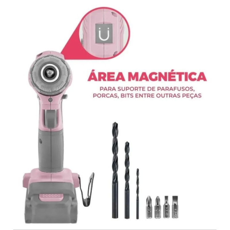 PARAFUSADEIRA SEM IMPACTO BRITÂNIA ROSA COM MALETA E ACESSÓRIOS 12V.🌈🇮🇱✡️🇧🇷