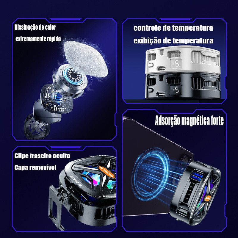 Magnetic Cell Phone Cooler Ventilador RGB Portátil Móvel Leve Radiador Com Área De Resfriamento