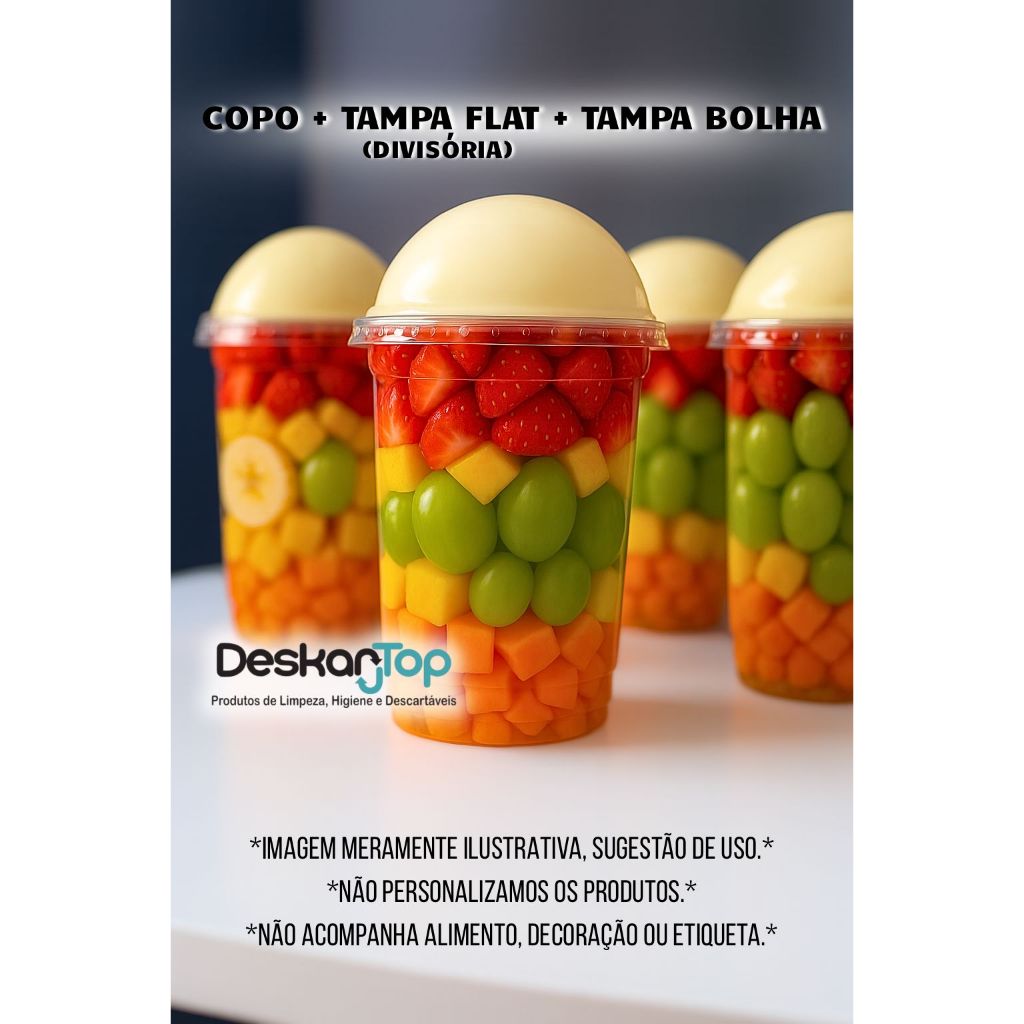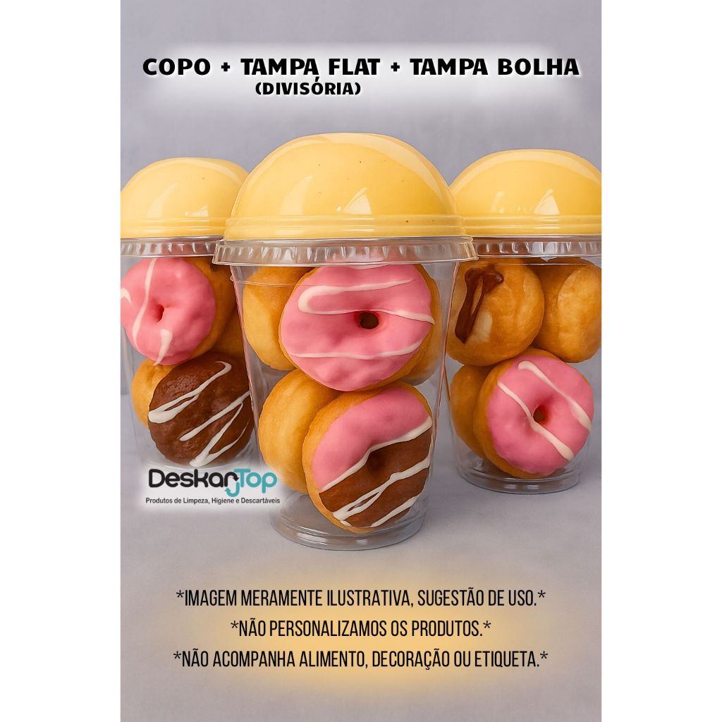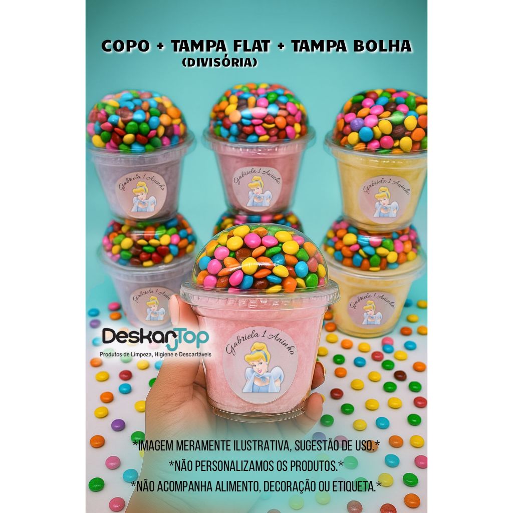 10/20/30 Unidades Kit Copo Bolha + Tampa Flat Divisória 300ml/400ml/500ml para Doces Copo da Felicidade