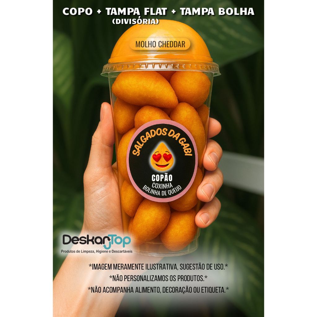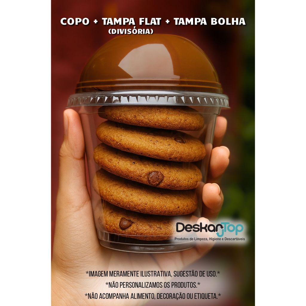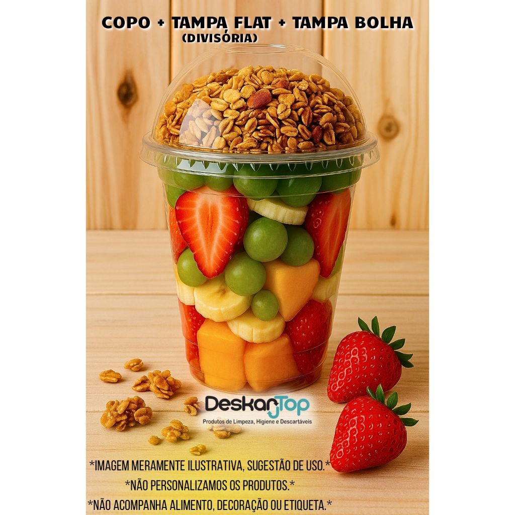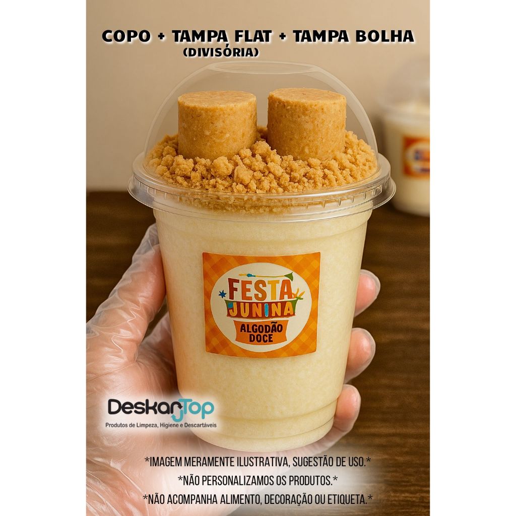 10/20/30 Unidades Kit Copo Bolha + Tampa Flat Divisória 300ml/400ml/500ml para Doces Copo da Felicidade