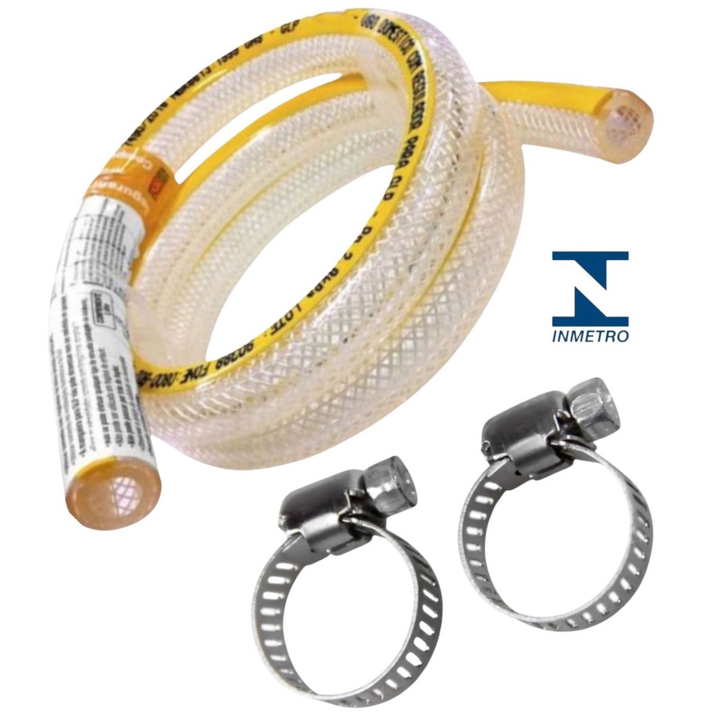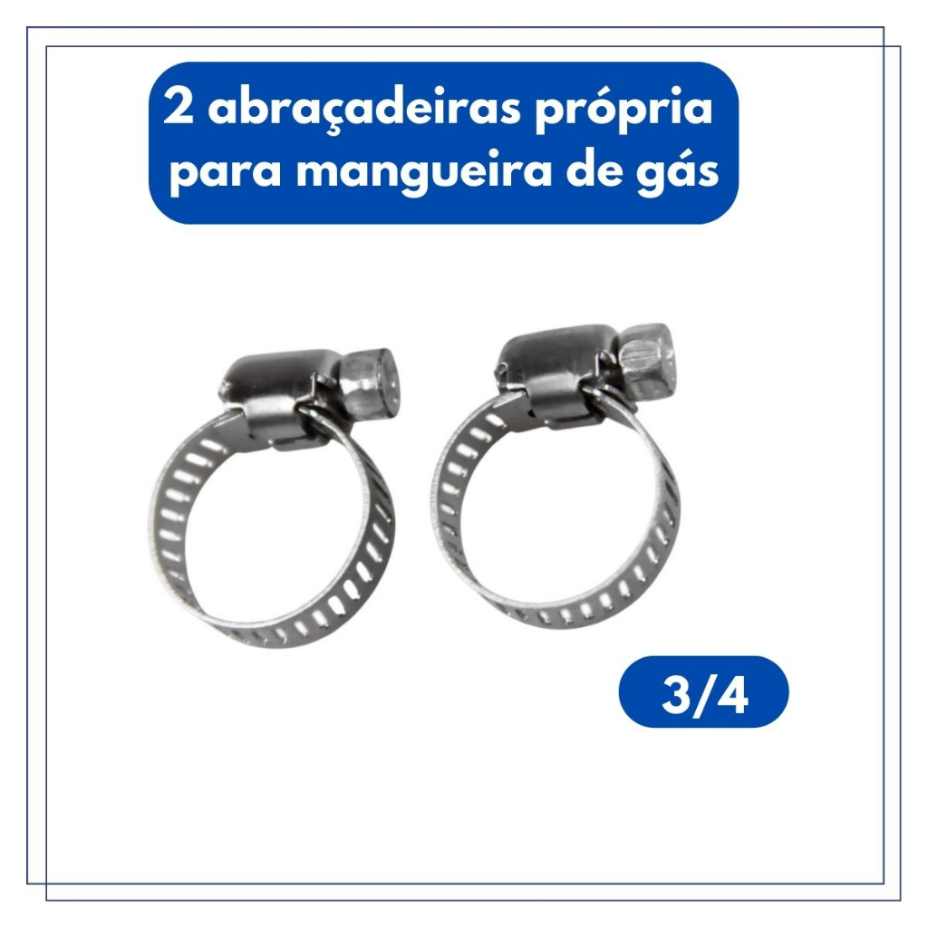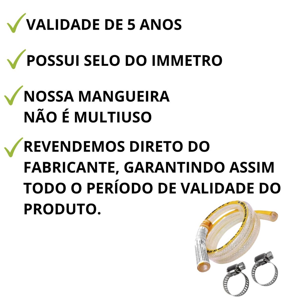 Mangueira Gas Cozinha GLP Fogao Botijao 13Kg com 2 Abraçadeira de Aço Inoxidavel 3/4 Garantia 5 anos