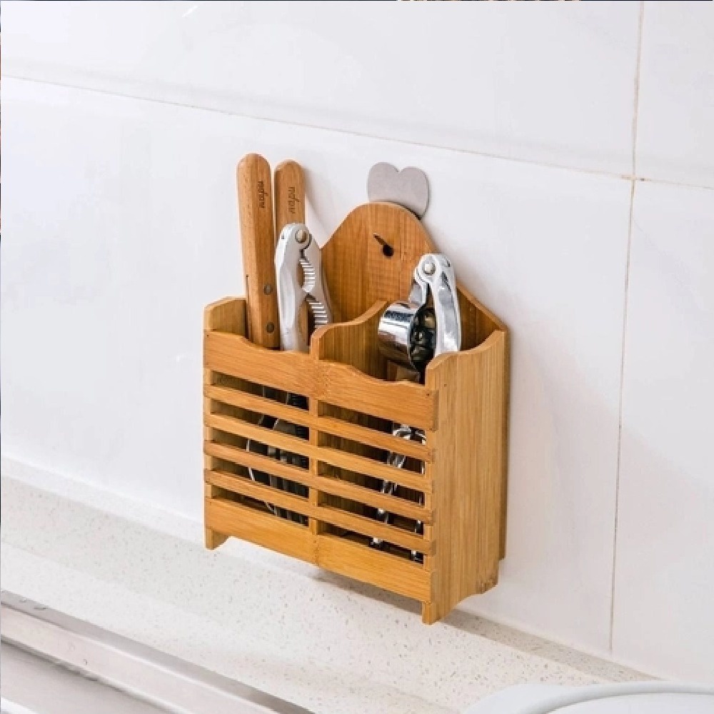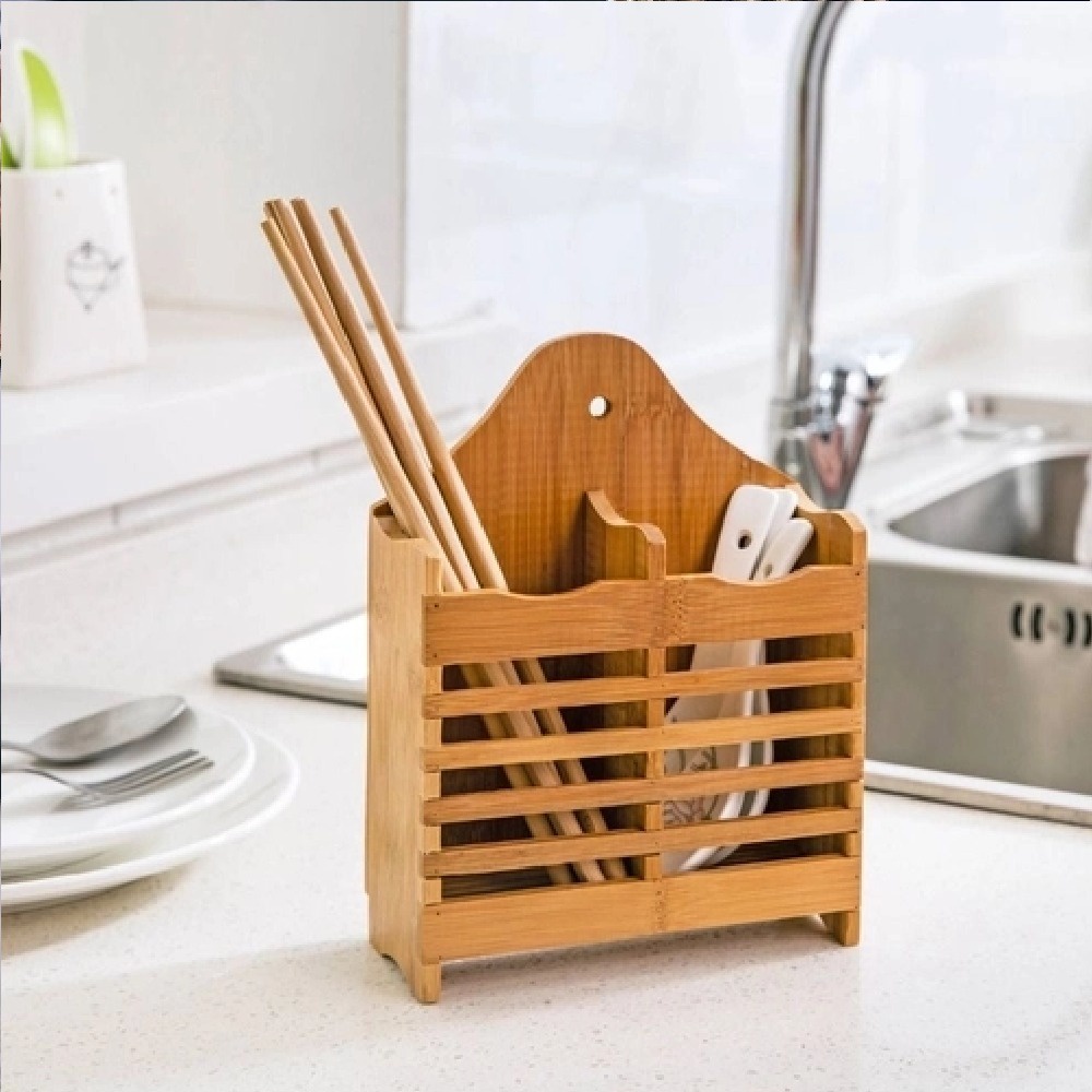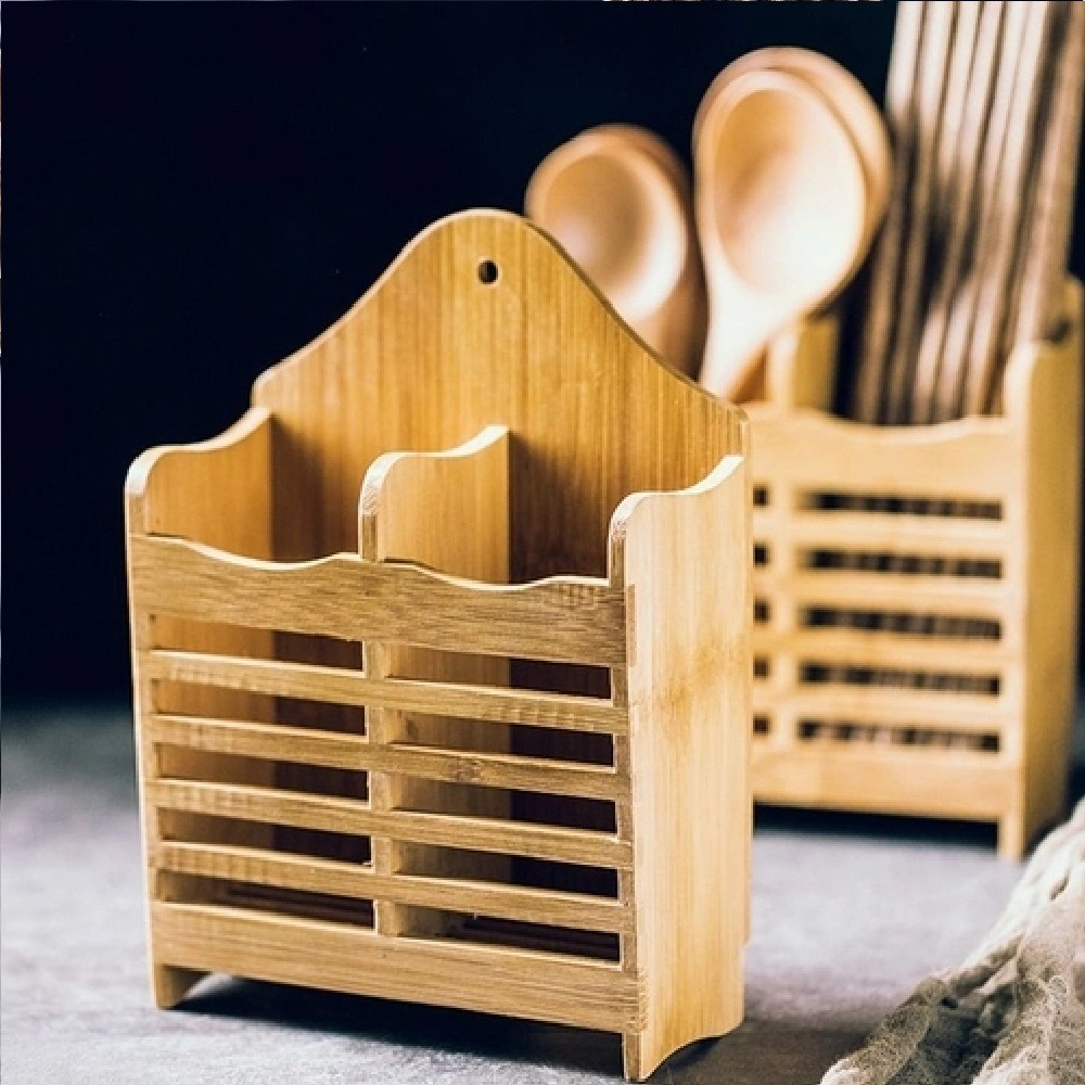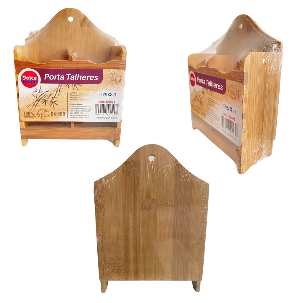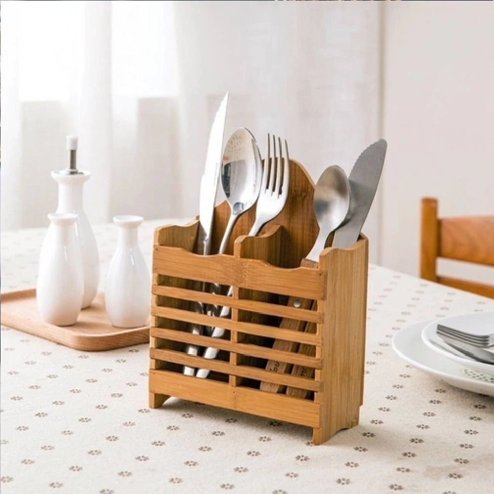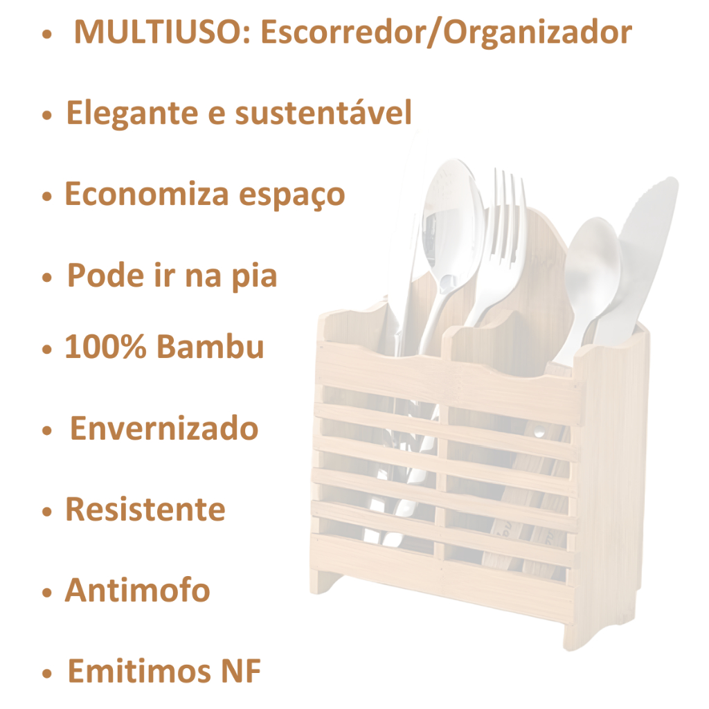 Porta Talheres Bambu Organizador Escorredor de Bambu Expositor Utensílios Moderno Original