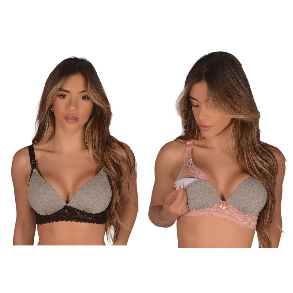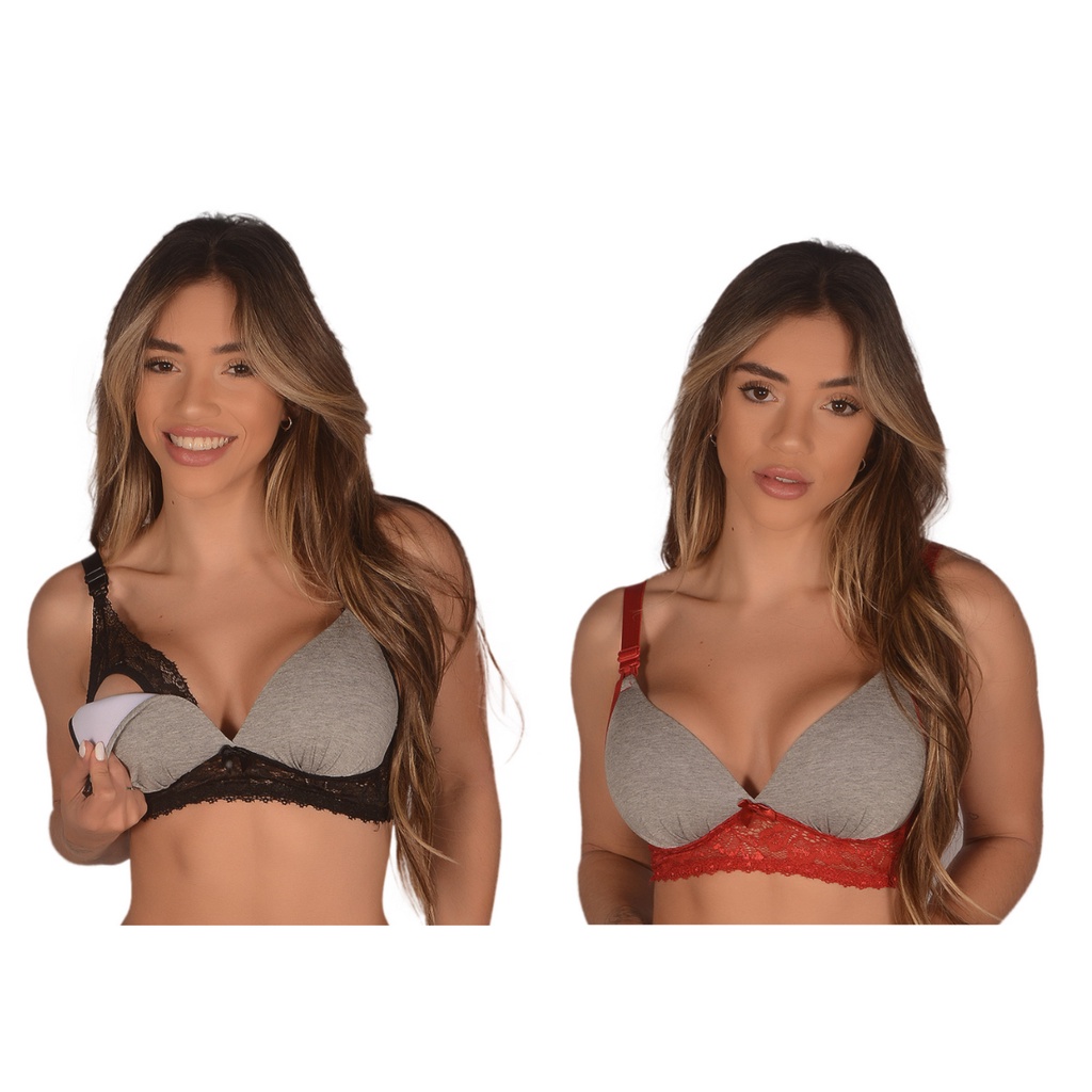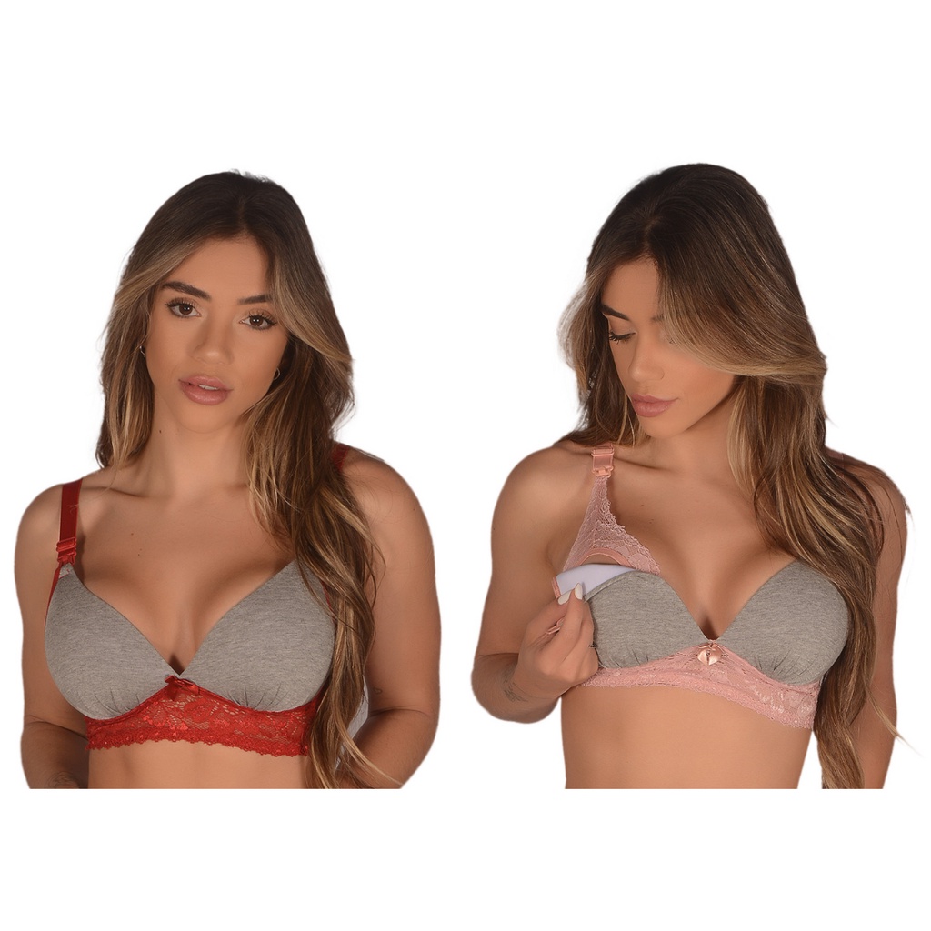 Kit 2 Sutiãs Amamentação de Bojo Confort Rendado Reforçado Feminino Soutien Pós Parto Sustentação para Amamentar Renda