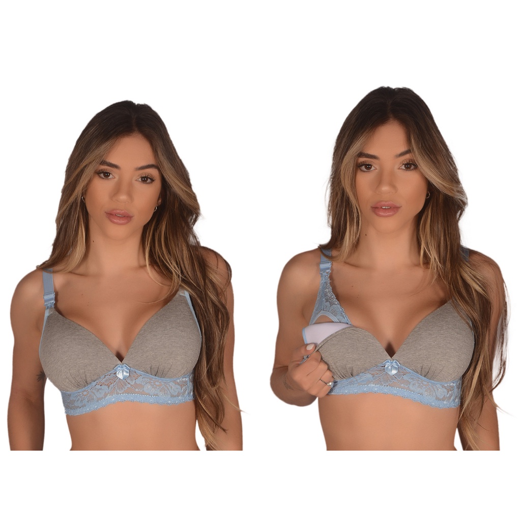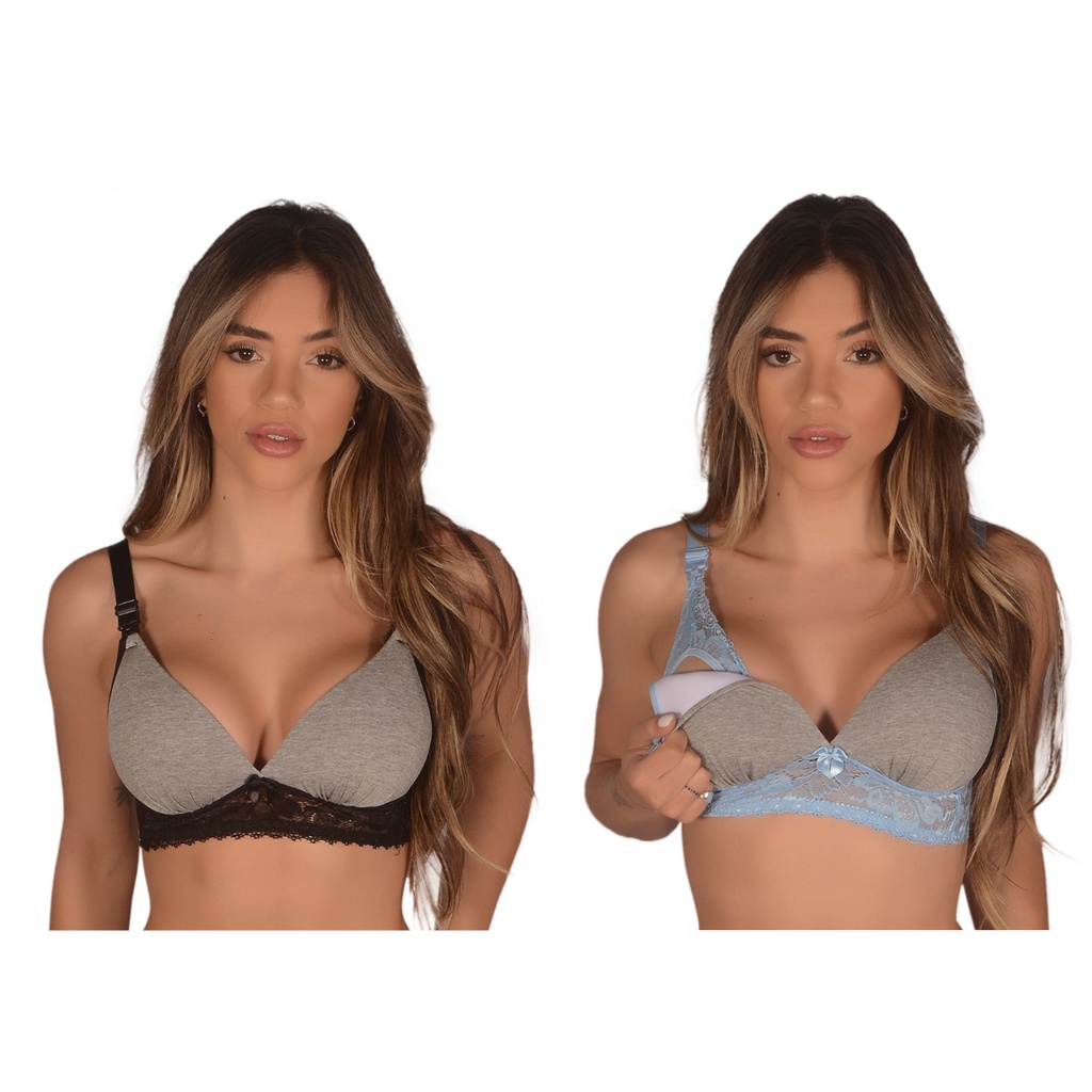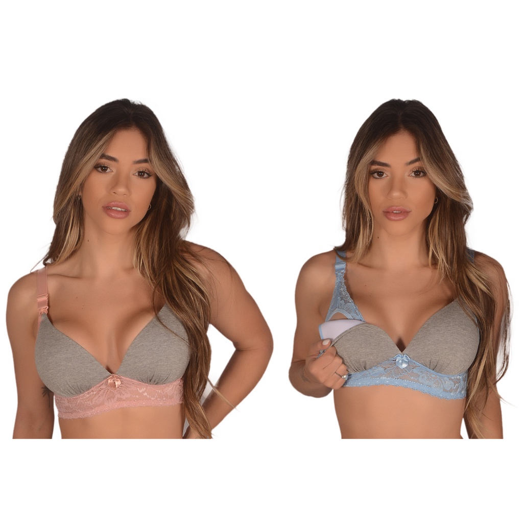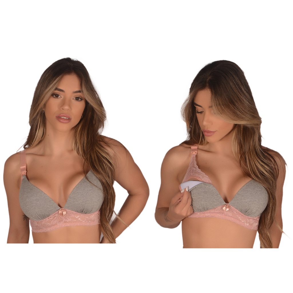 Kit 2 Sutiãs Amamentação de Bojo Confort Rendado Reforçado Feminino Soutien Pós Parto Sustentação para Amamentar Renda