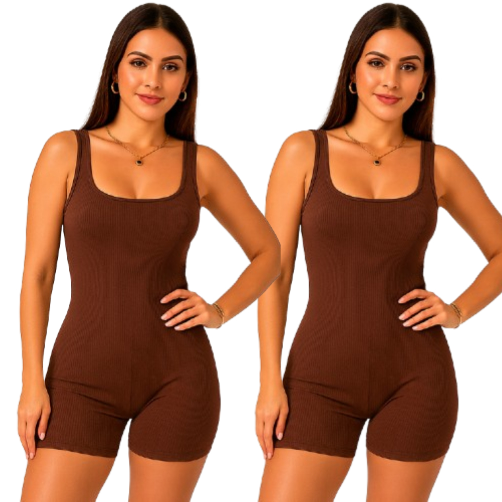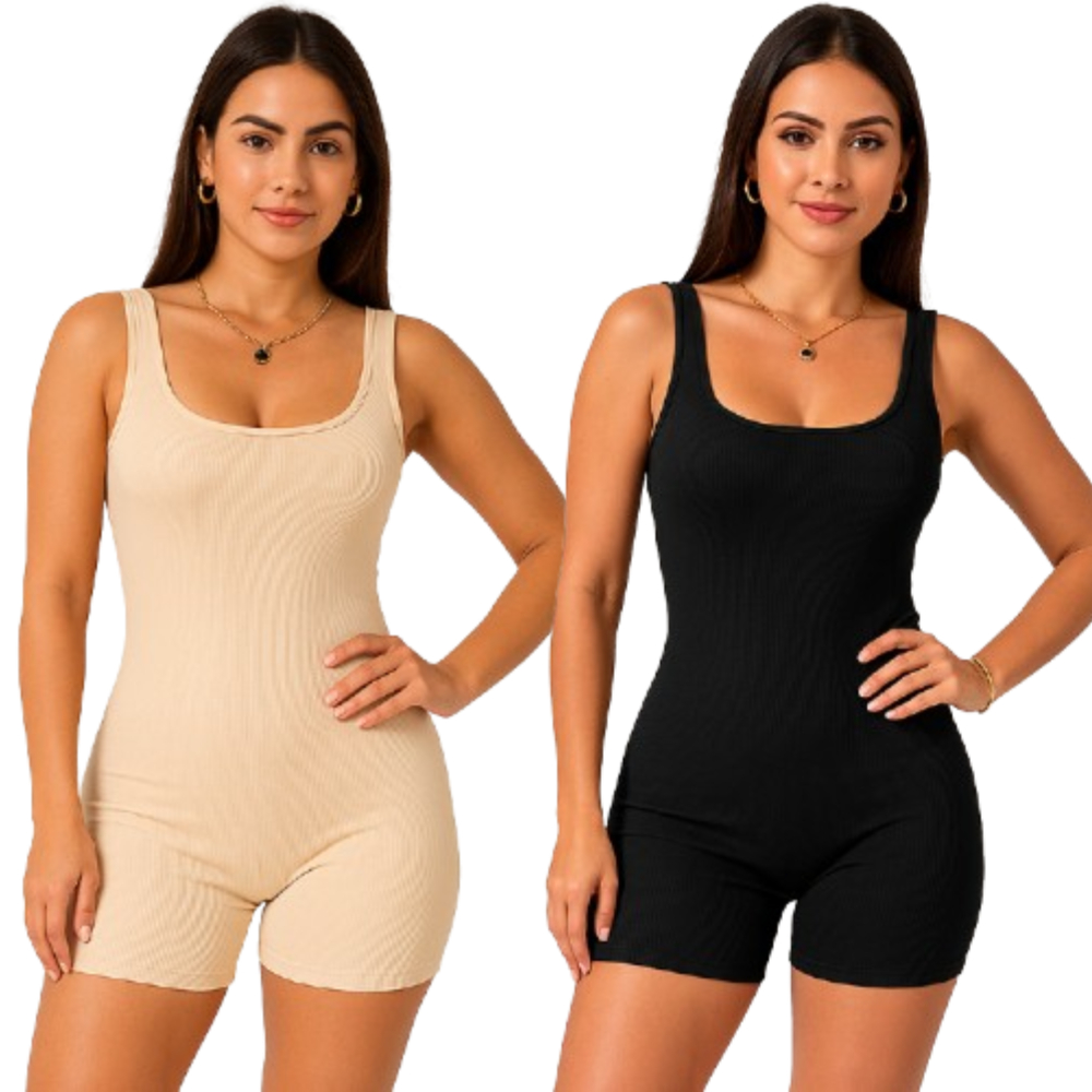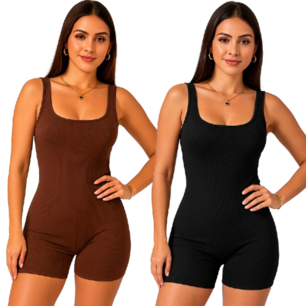 kit 2 Macaquinho Curto Feminino Ribana Canelada Moda Casual