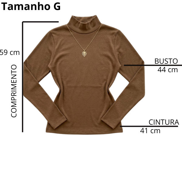 Blusa Feminina Manga Longa Cacharrel Confortável Básico Gola Alta