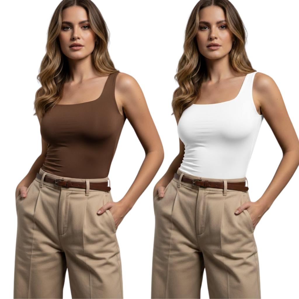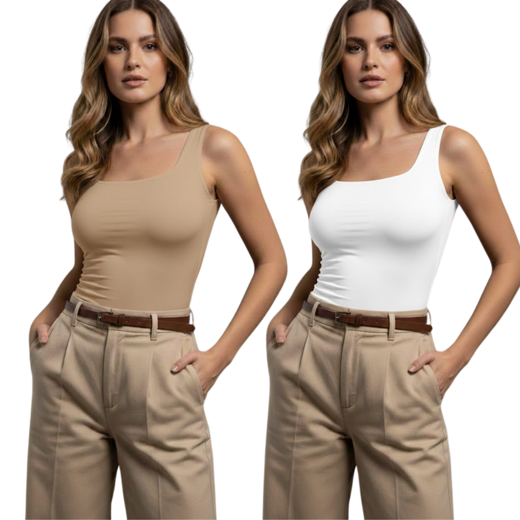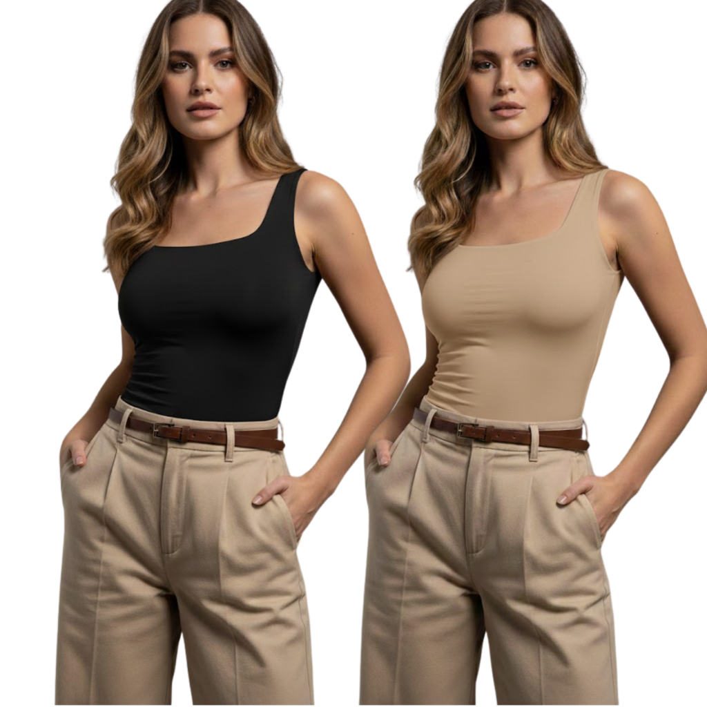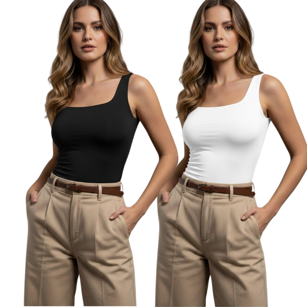Kit 2 Regata Feminina Gola Quadrada Suplex Premium Não Fica Transparente